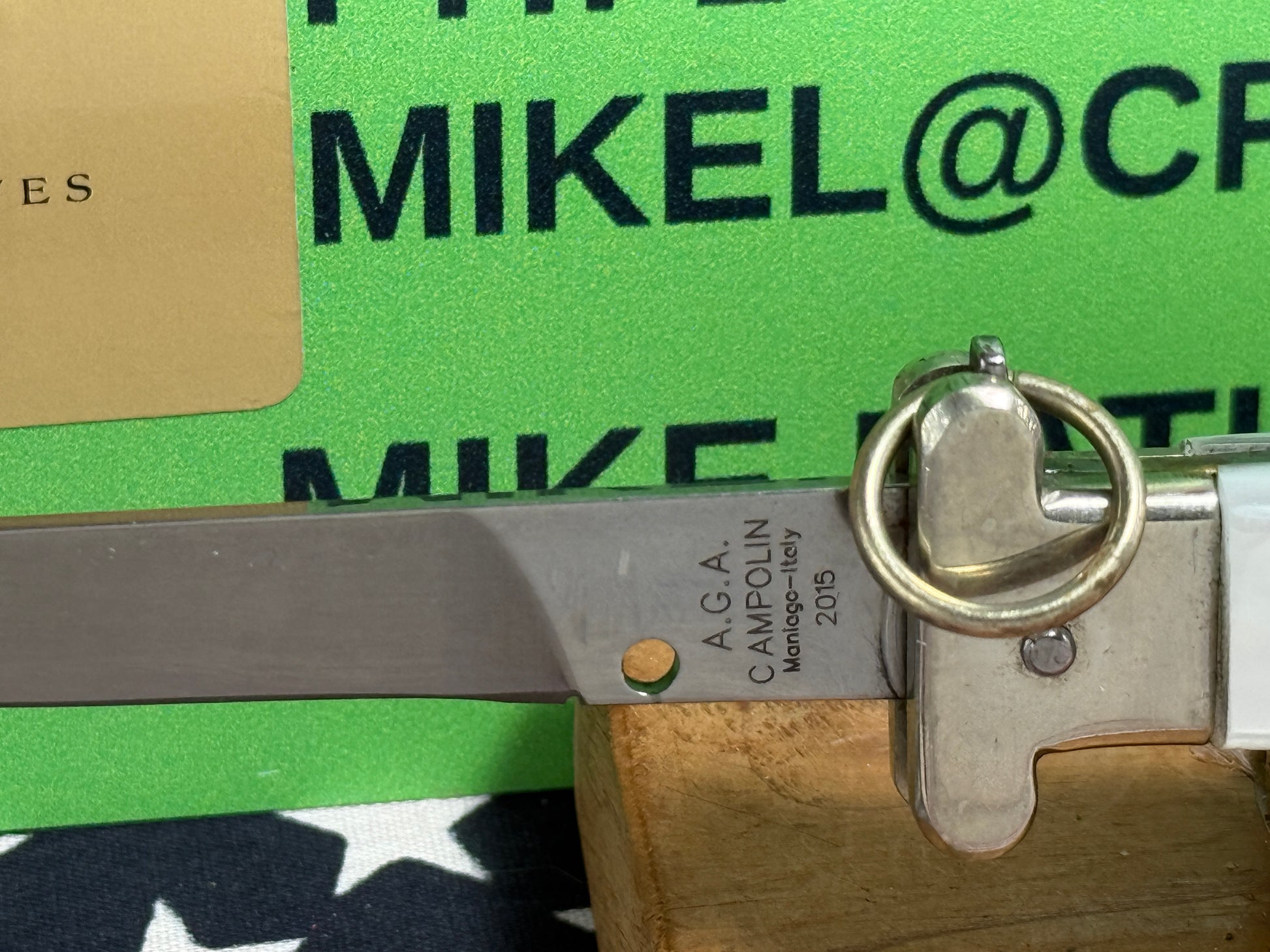 A.G.A. CAMPOLIN ITALY 2015 RING PULL FRANCESE ITALIAN AUTOMATIC KNIFE WHITE PEARLX HANDLES