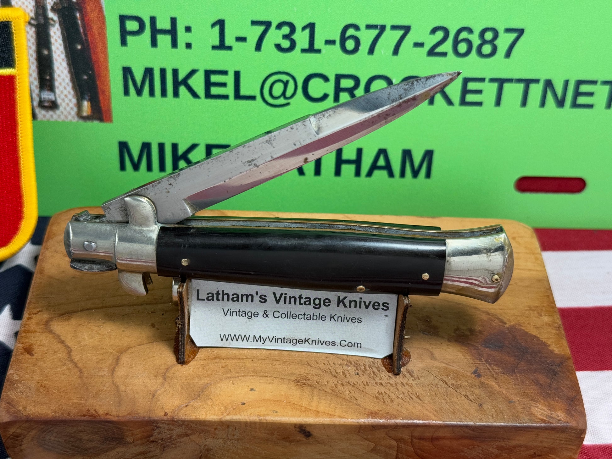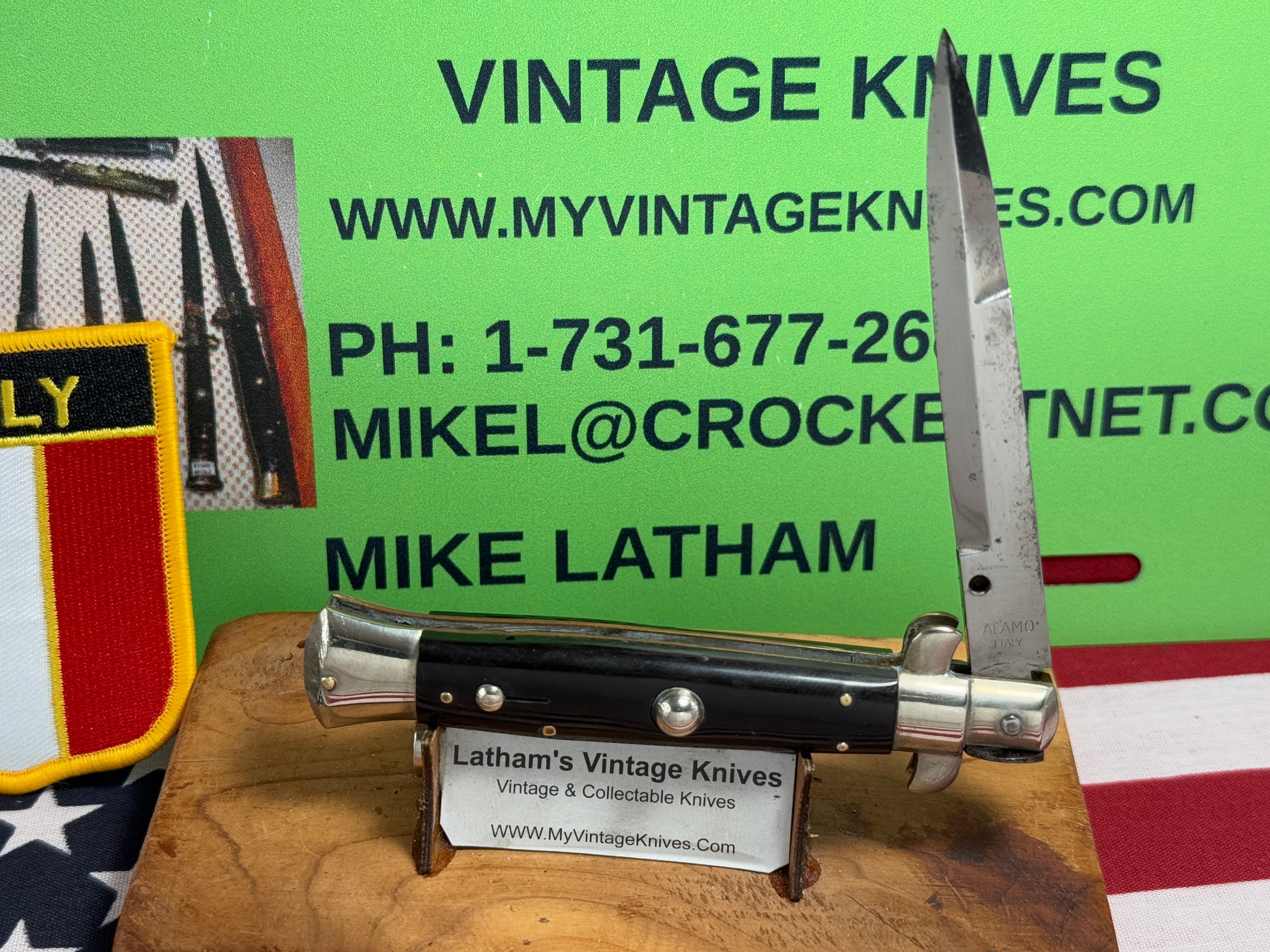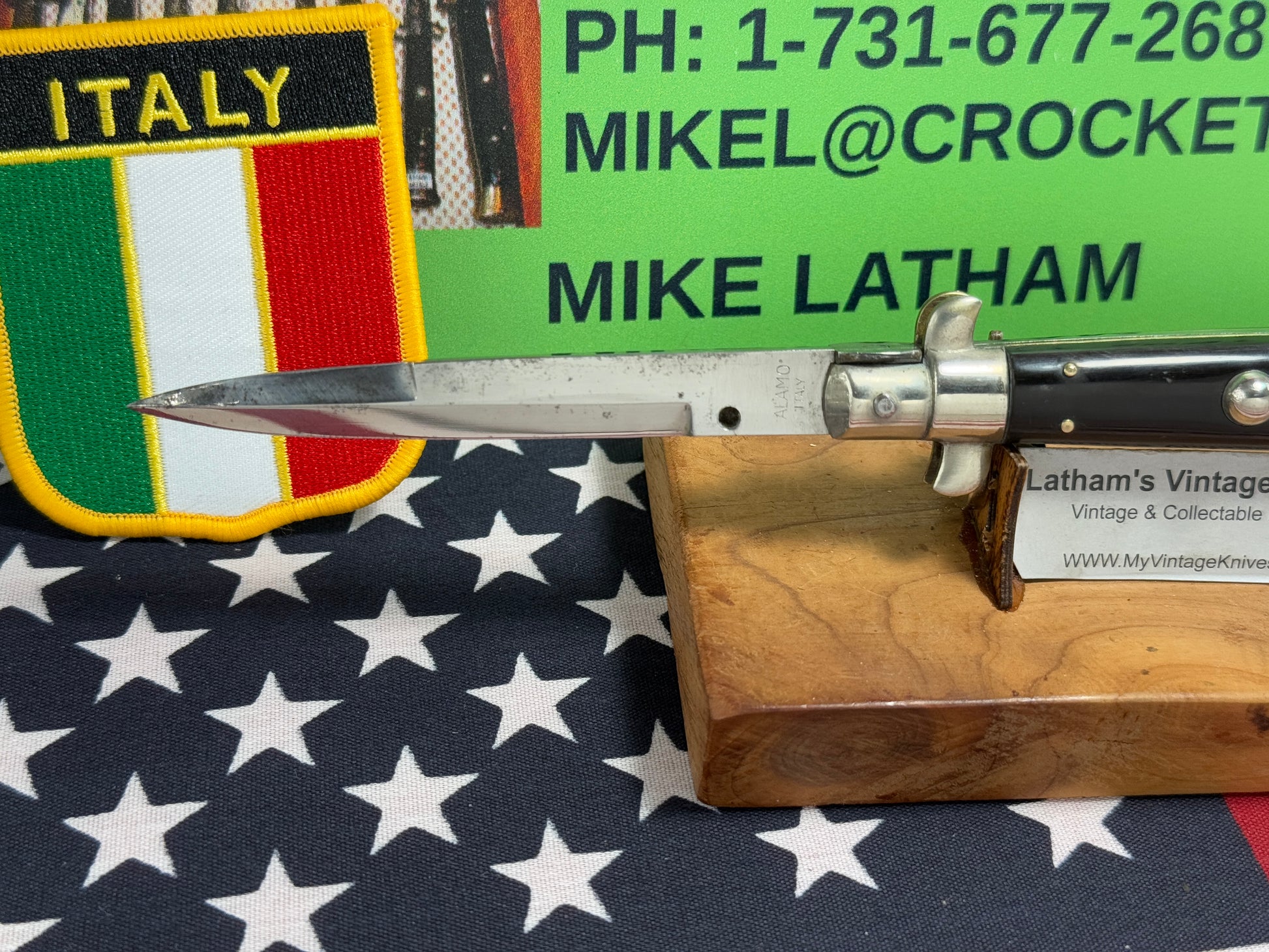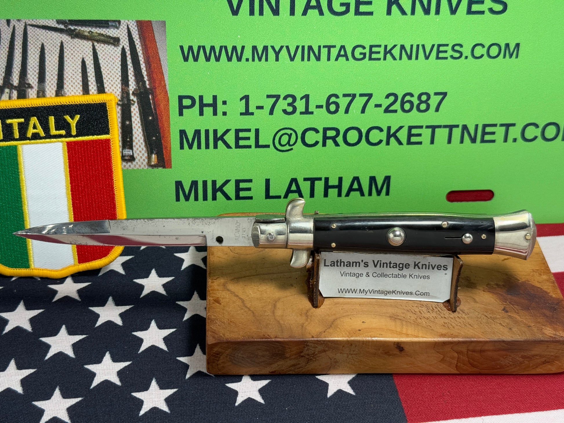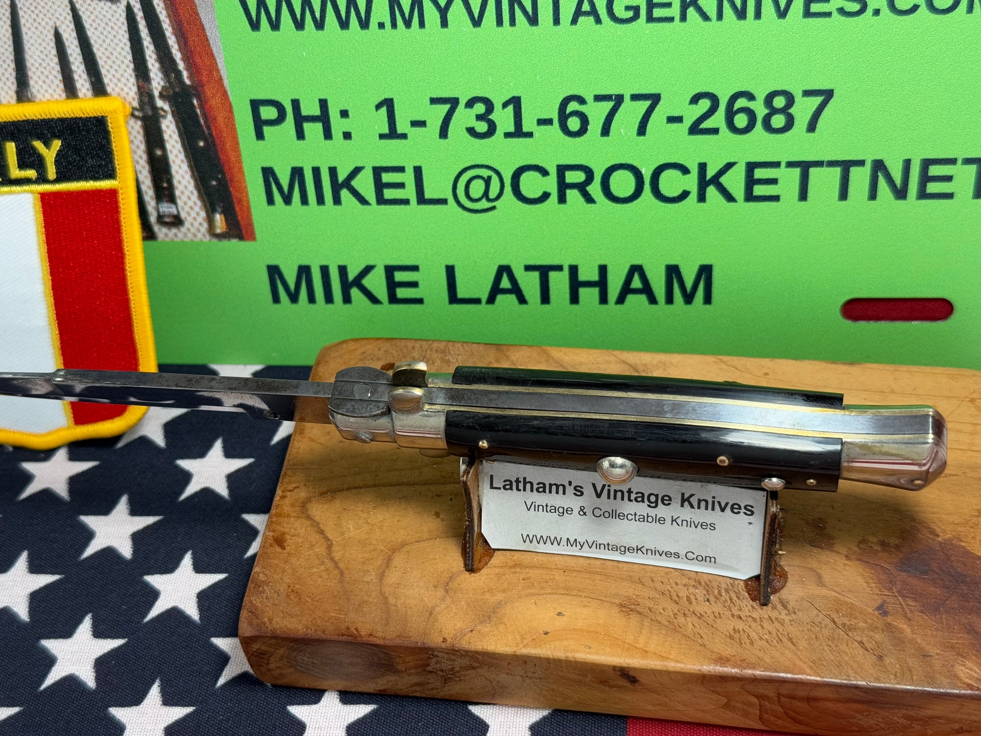 ALAMO ITLAY 1950-57 PICK LOCK STILETTO 20 CM ITALIAN AUTOMATIC KNIFE BUFFALO HORN HANDLES