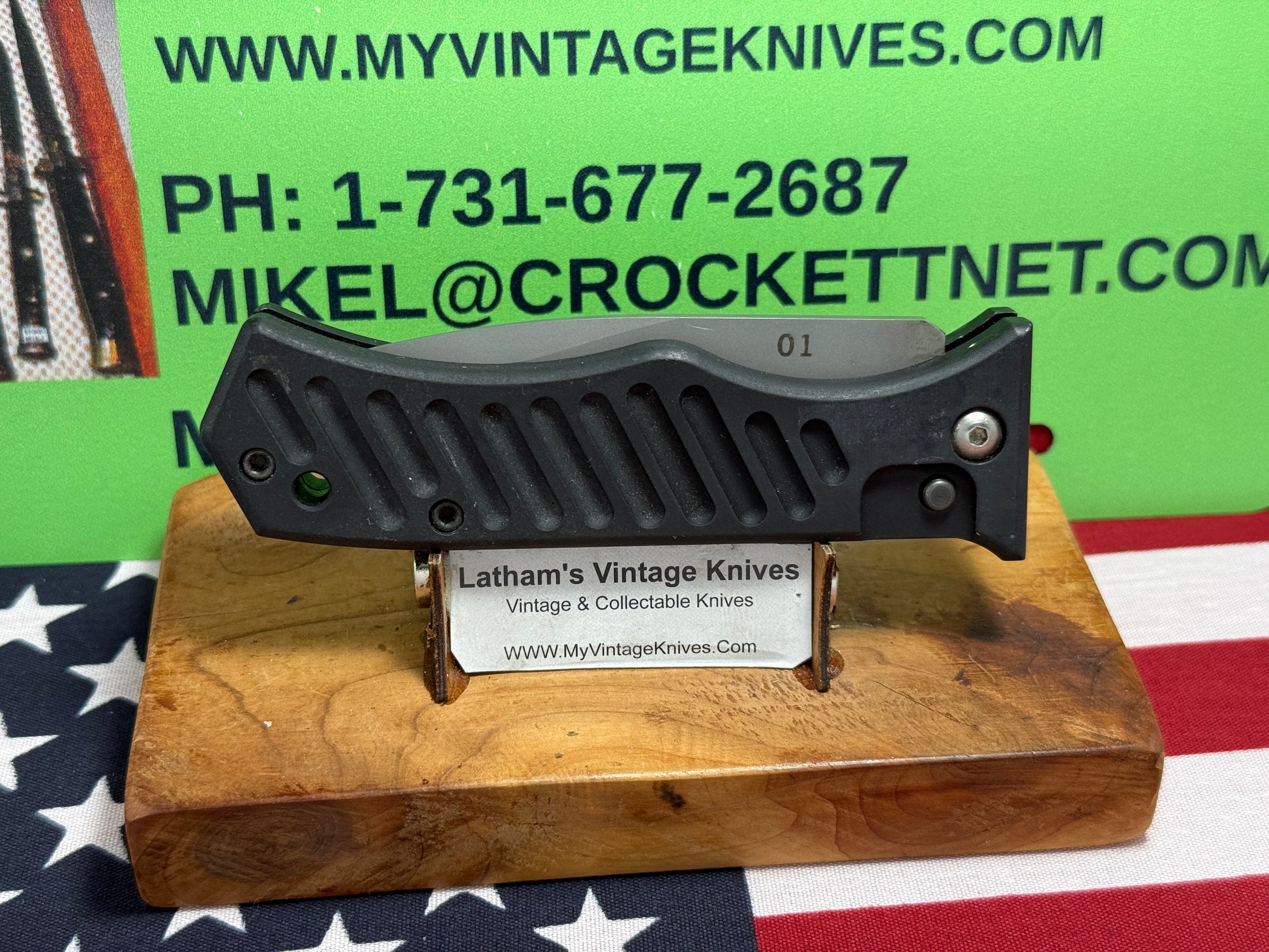 AMERICAN TACTICAL SUPPLY CO. (ATS) 2008-2012 SIDE OPENING SER# 001 TACTICAL AUTOMATIC KNIFE BLACK METAL HANDLES