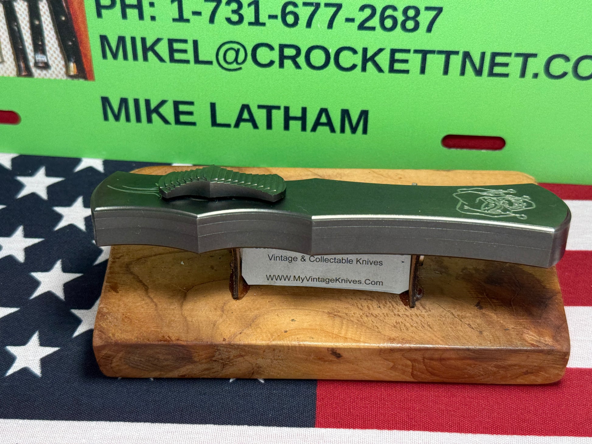 PATTERN: OTF, D/A, RAZOR WITH DAGGER BLADE, JOKER EDITION PROTYPE. MIRROR POLISHED BLADE