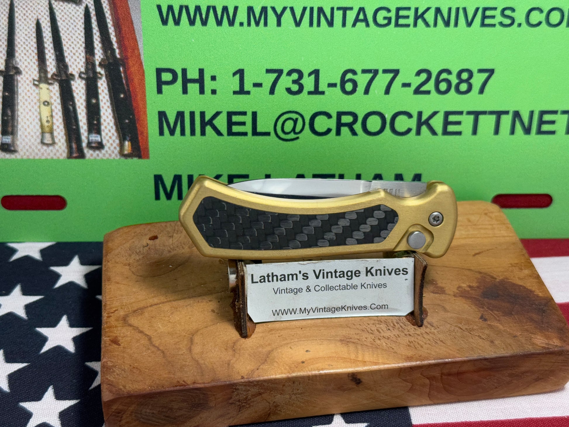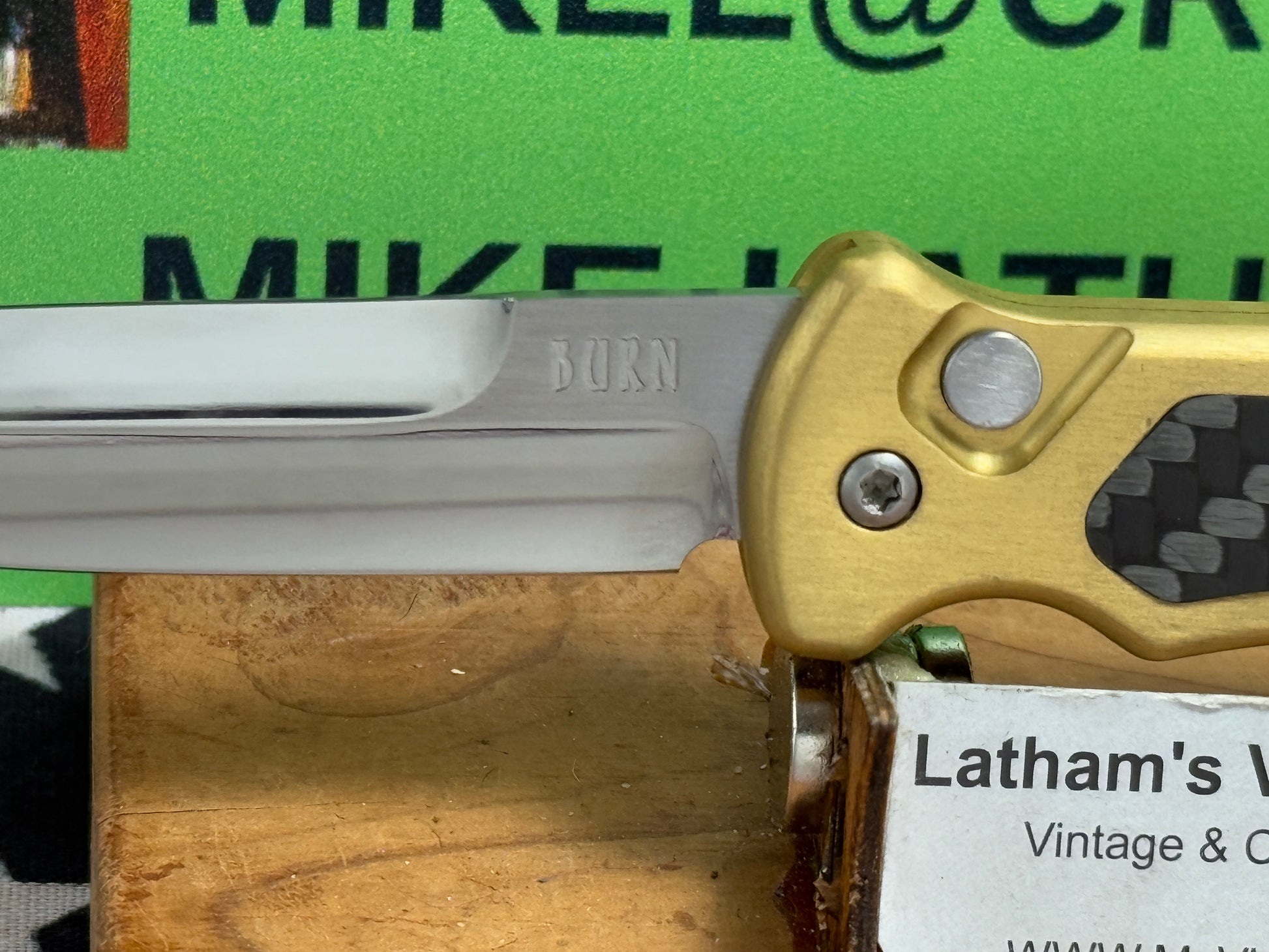 BURN KNIVES, PAUL PANAK, 2020 SMALL SIDE OPENING TACTICAL WITH MIRROR POLISHED BLADE CUSTOM AUTOMATIC KNIFE METAL HANDLES WITH CARBON FIBER INSERTS