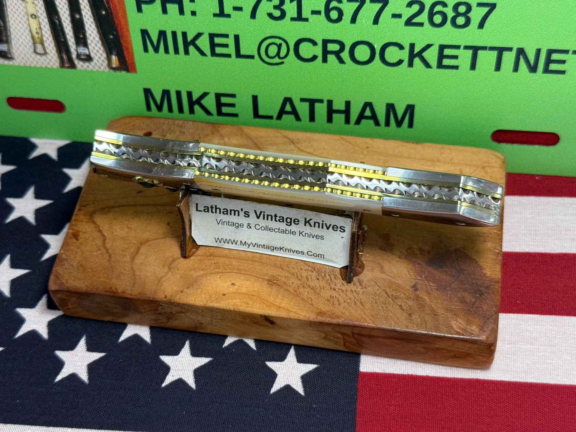 CLARK, NATE CUSTOM KNIVES USA/ORGEON 2005-2015 ERA ROYAL DAGGER D/A MIRROR POLISHED BLADE CUSTOM AUTOMATIC KNIFE GOLD PEARL HANDLES WITH JEWELS