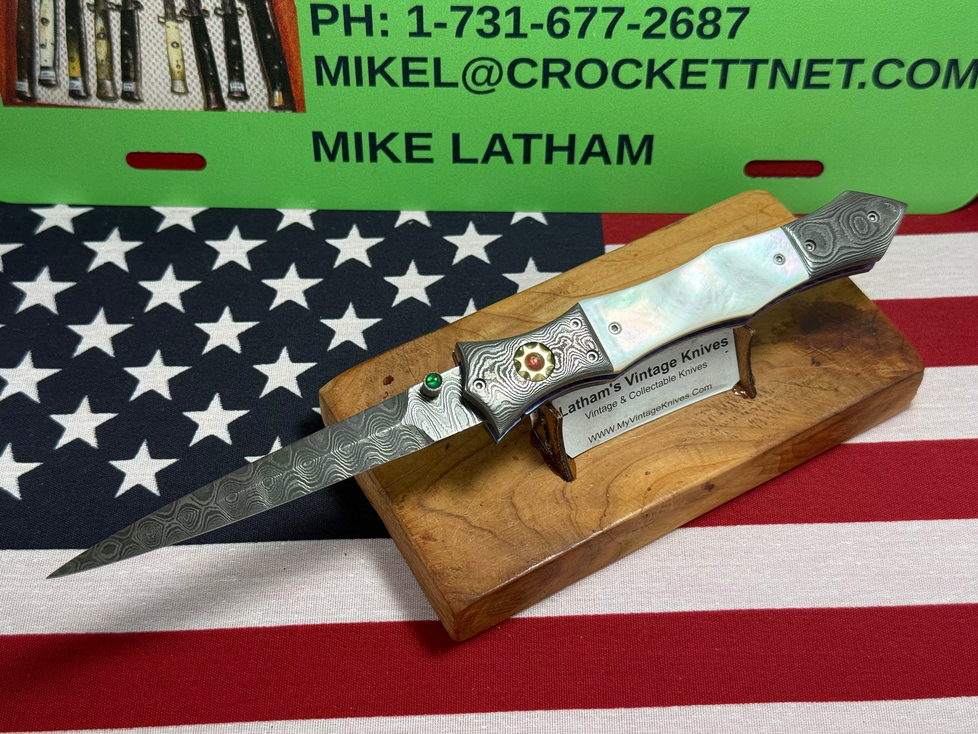 CLARK, NATE CUSTOM KNIVES ORGEON USA 2005-2015 ERA ROYAL DAGGER D/A DAMACUS STEEL CUSTOM AUTOMATIC KNIFE PEARL HANDLES WITH JEWELS