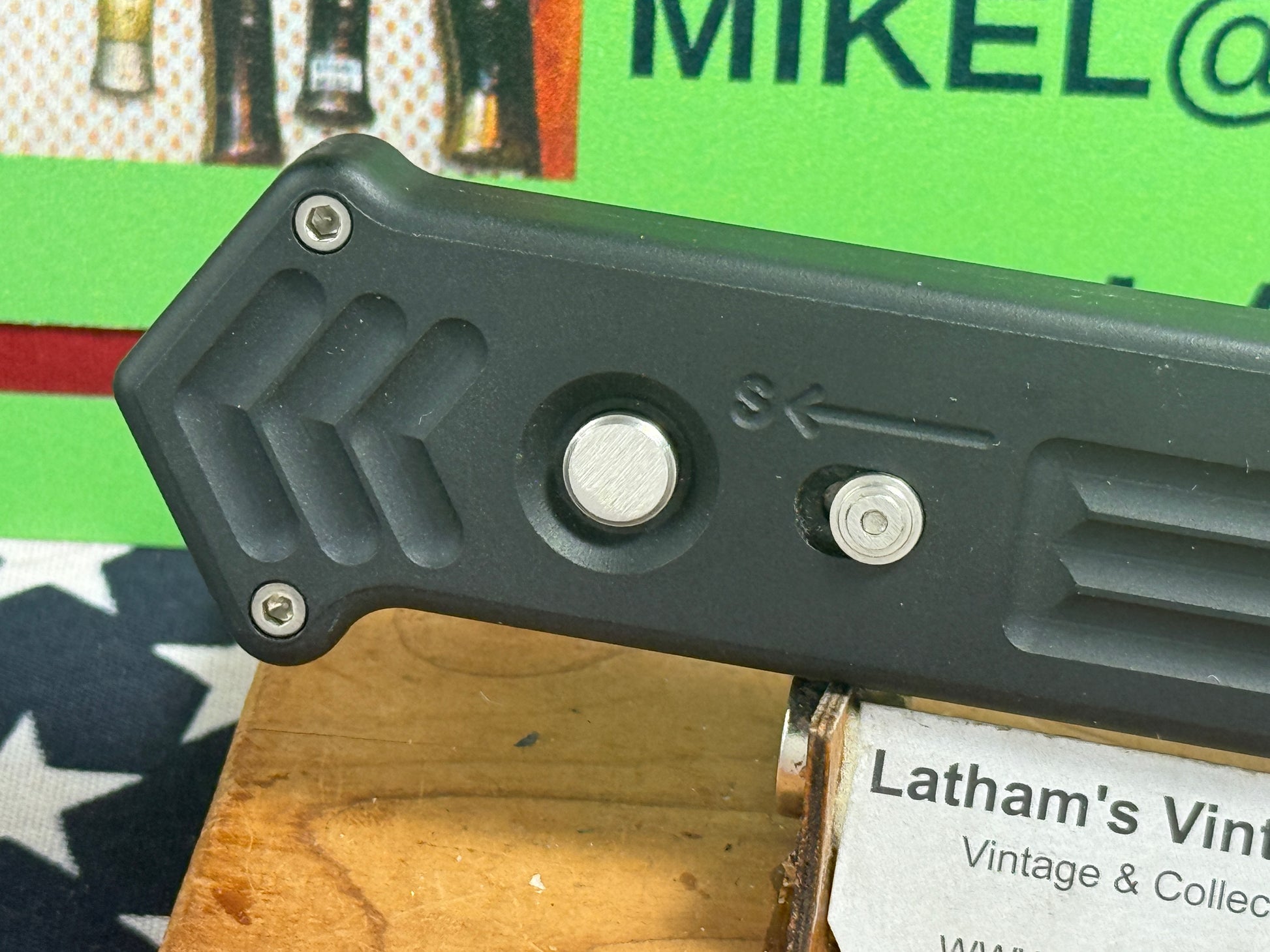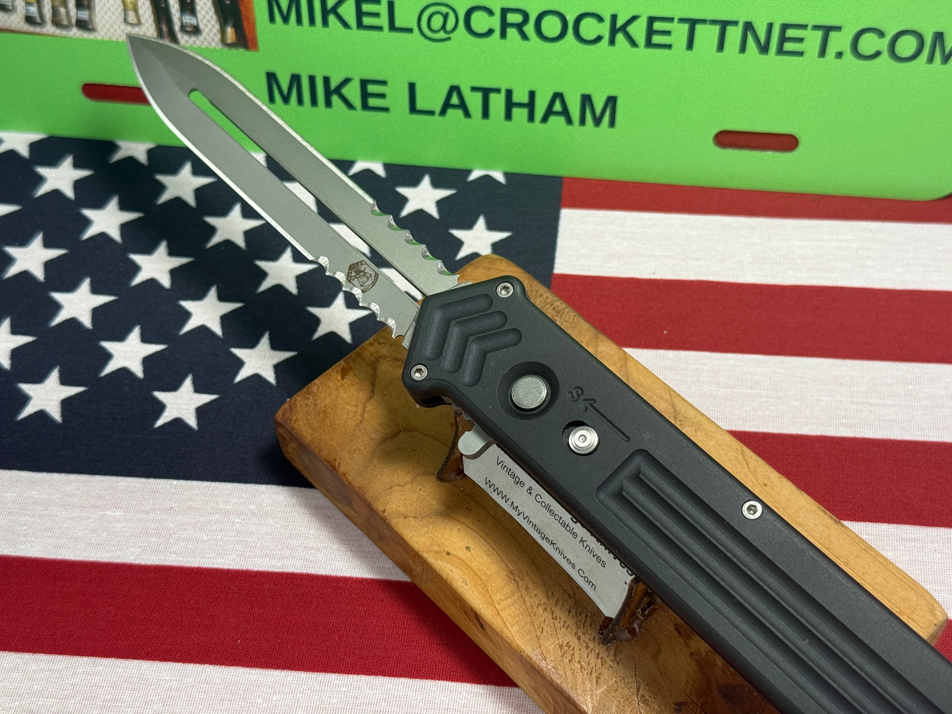 DALTON, ROB CUSTOM AUTOMATIC KNIFE 1998-2010 OTF SINGLE ACTION LARGE CUPID TACTICAL AUTOMATIC KNIFE BLACK METAL HANDLES