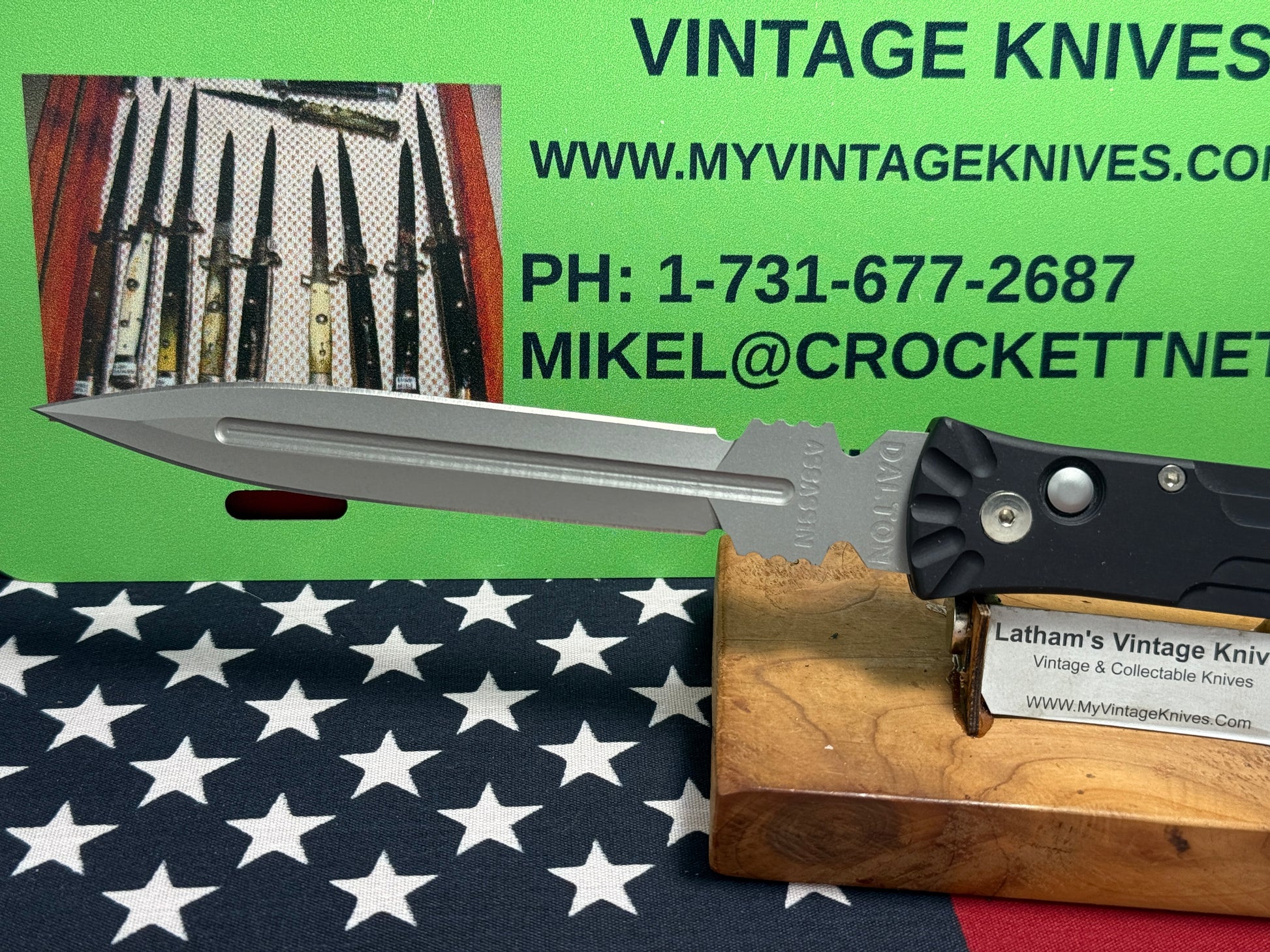 DALTON, ROB USA 1996-2000 CUSTOM AUTOMATIC LARGE ASSASSIN TACTICAL AUTOMATIC KNIFE BLACK METAL HANDLES