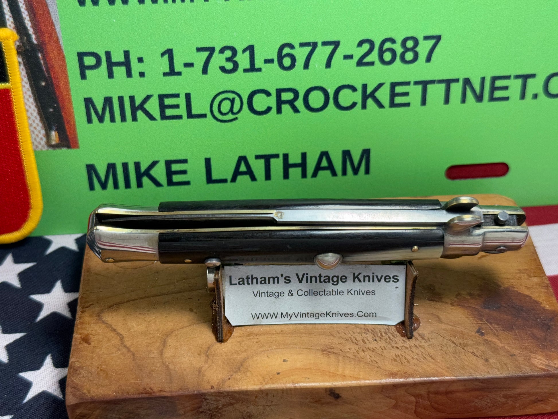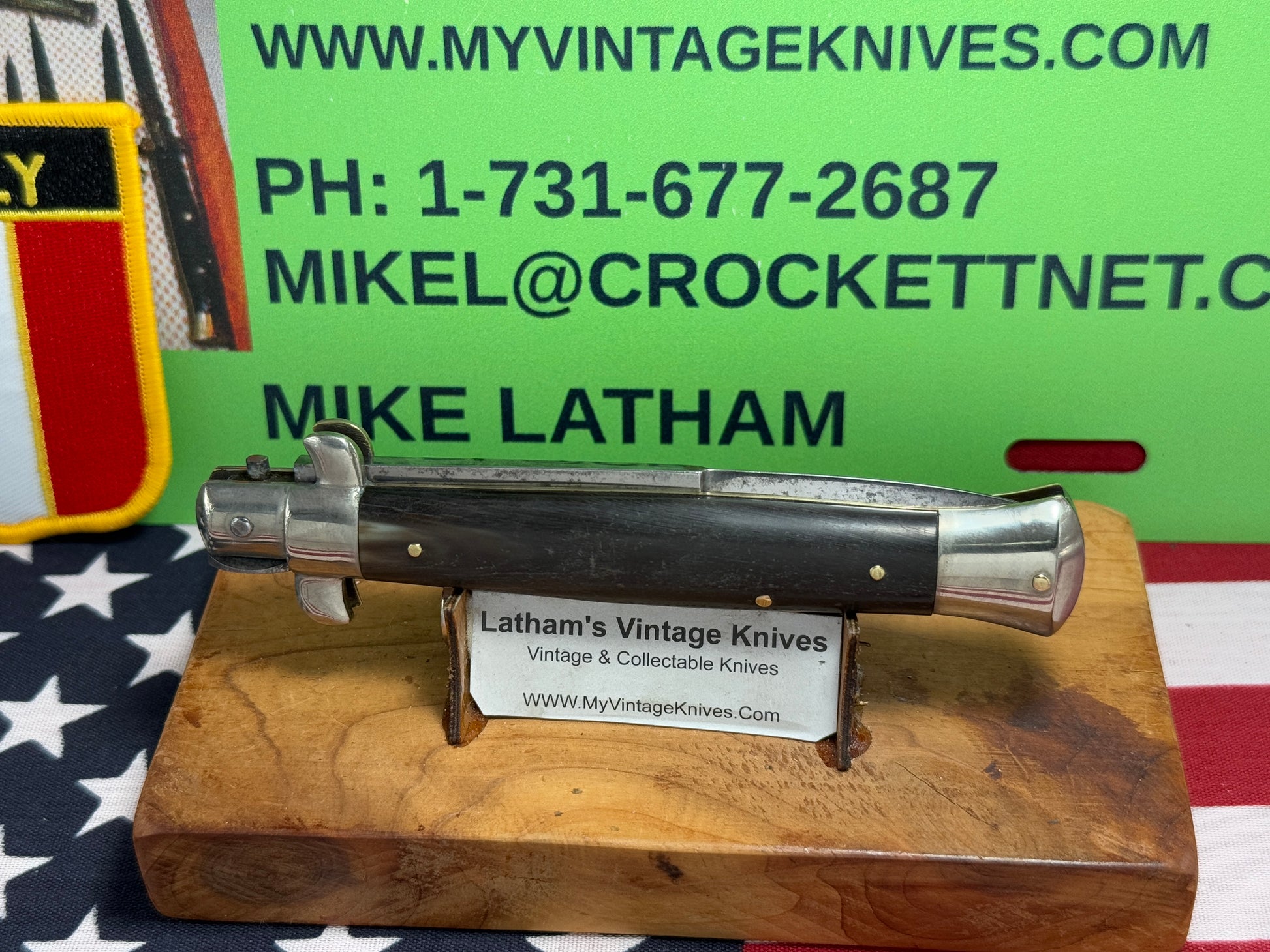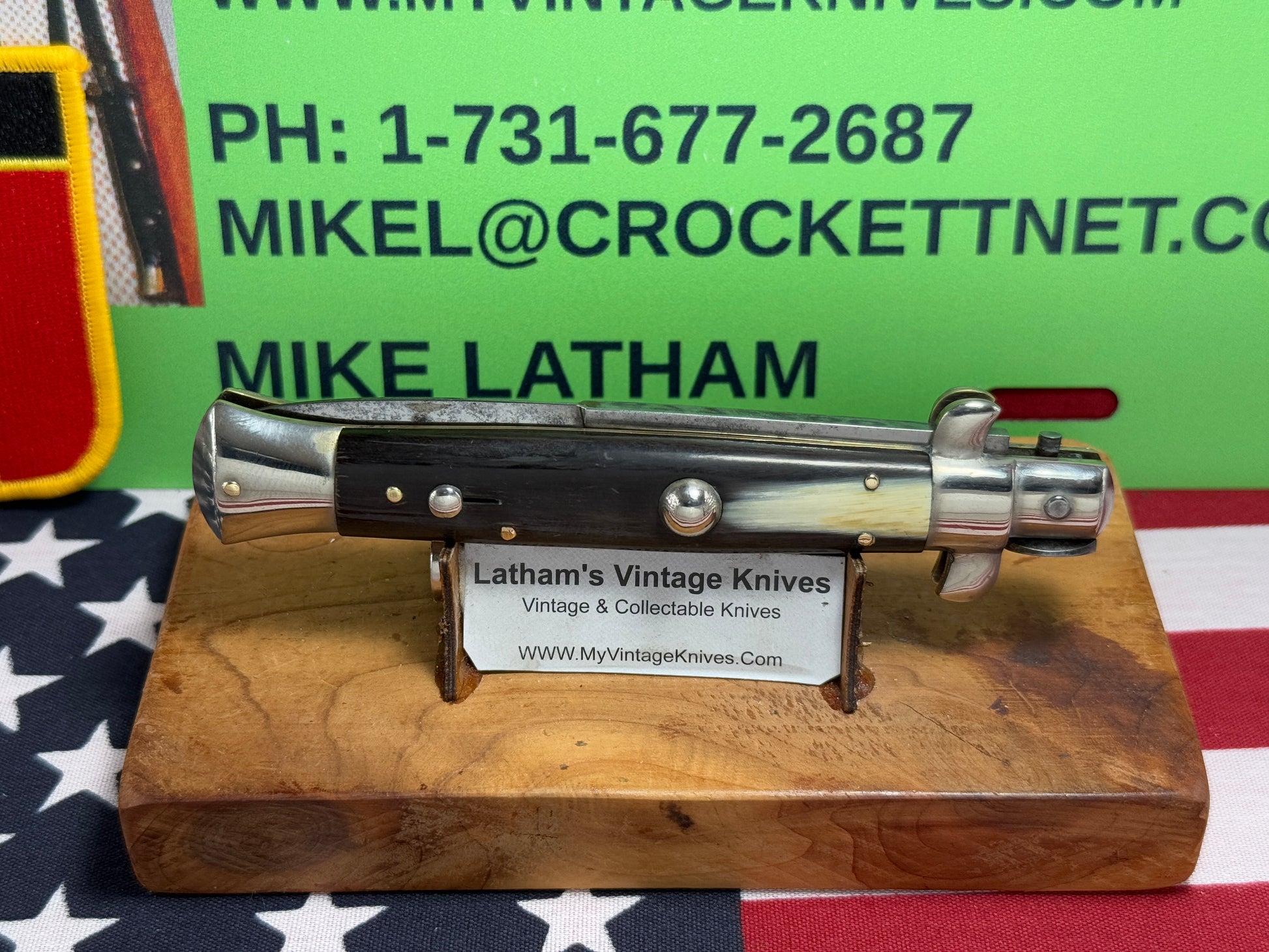 EIG CUTLERY ITALY 1950-57 PICK LOCK STILETTO 23 CM ITALIAN AUTOMATIC KNIFE BUFFALO HORN HANDLES