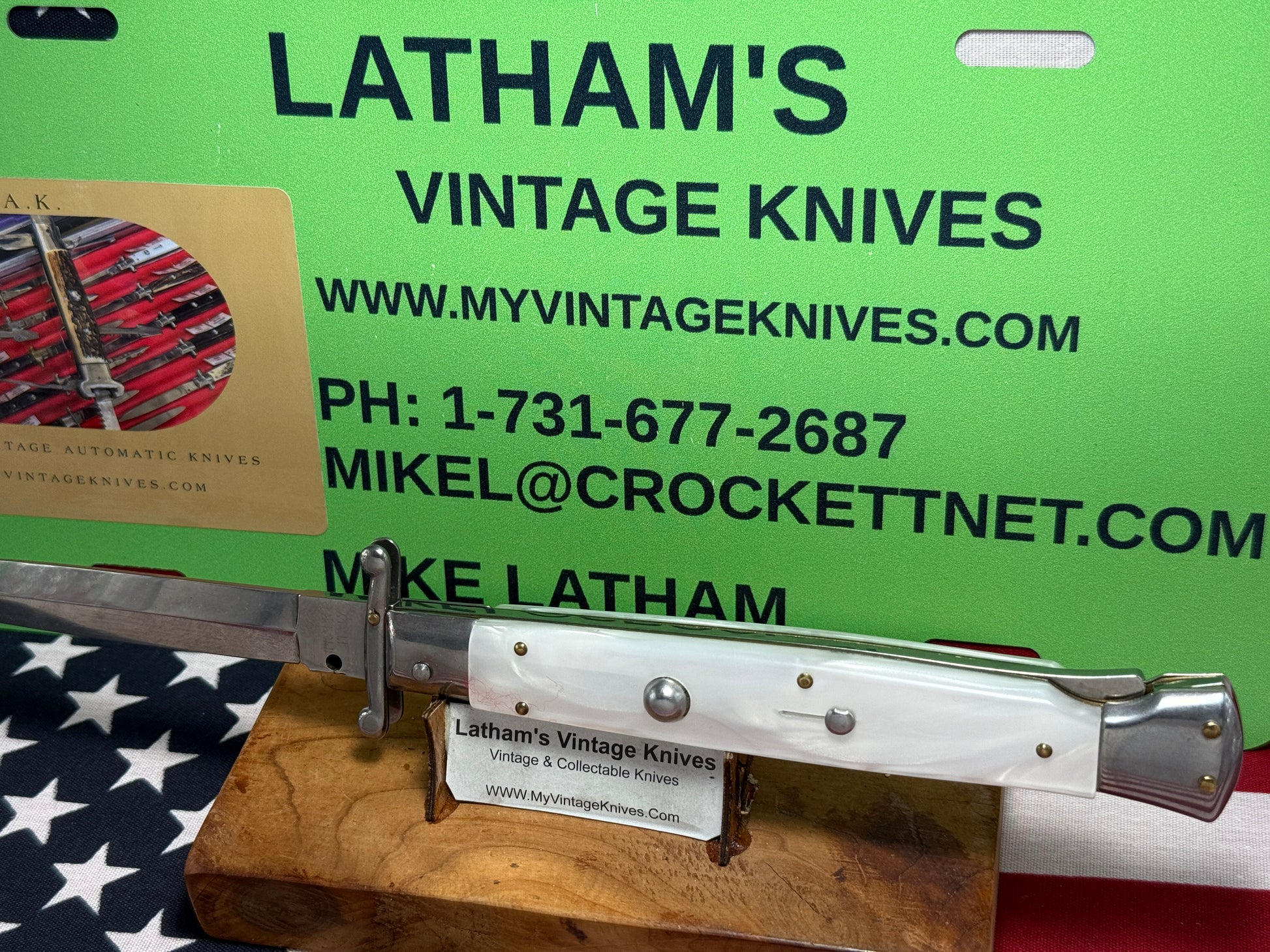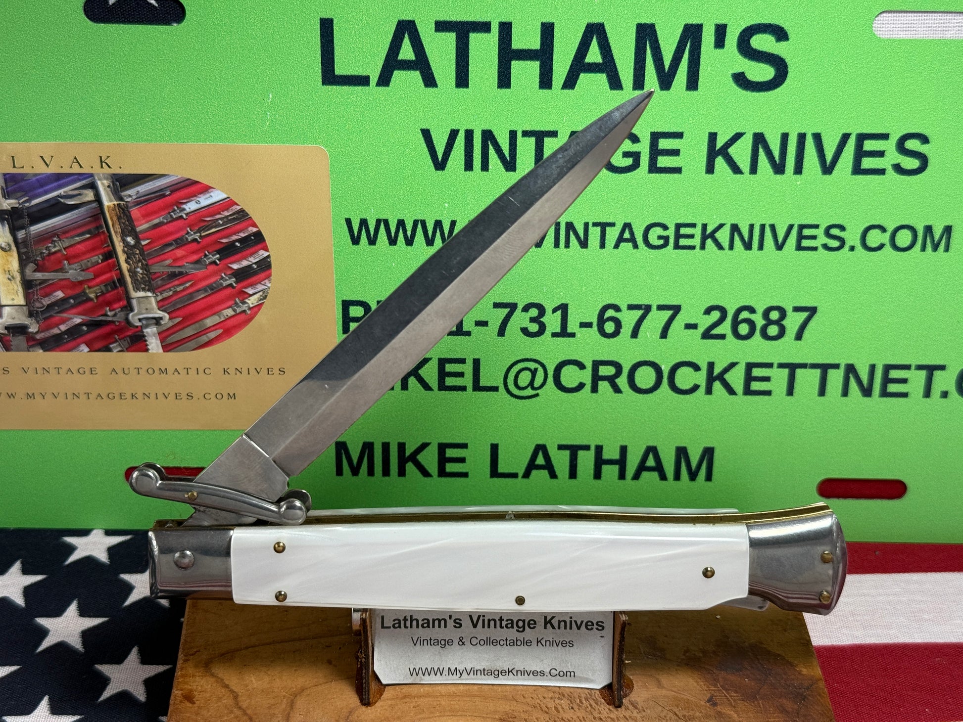 FRANK B. ITLAY 2015-2018 SWING GUARD LOCK BACK DAGGER BLADE 28 CM ITALIAN AUTOMATIC KNIFE WHITE PEARLX HANDLES