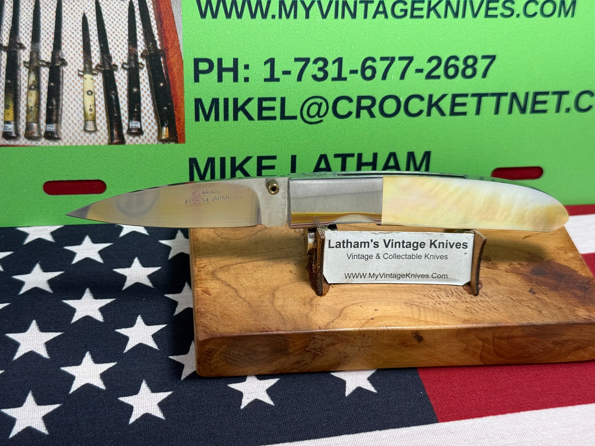 HARA, KOJI CUSTOM KNIVES JAPAN 2005-2008 ERA LINERLOCK FOLDER CUSTOM MANUAL OPEN KNIFE GOLD PEARL HANDLES