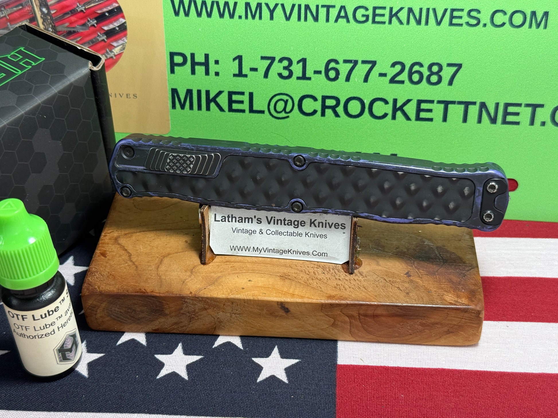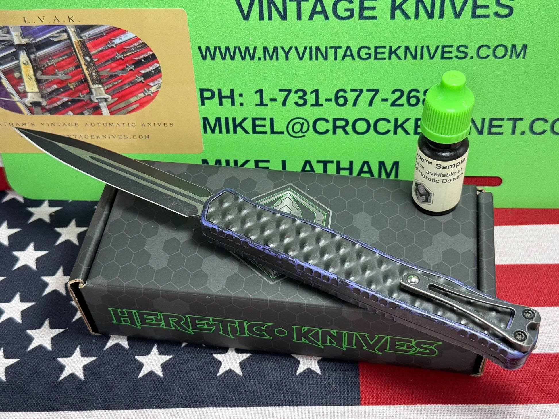 HERETIC KNIVES USA 2023 CLERIC II OTF DOUBLE EDGE H020-14A-BRKPU TACTICAL AUTOMATIC KNIFE BREAKTHROUGH PURPLE BUBBLE HANDLES