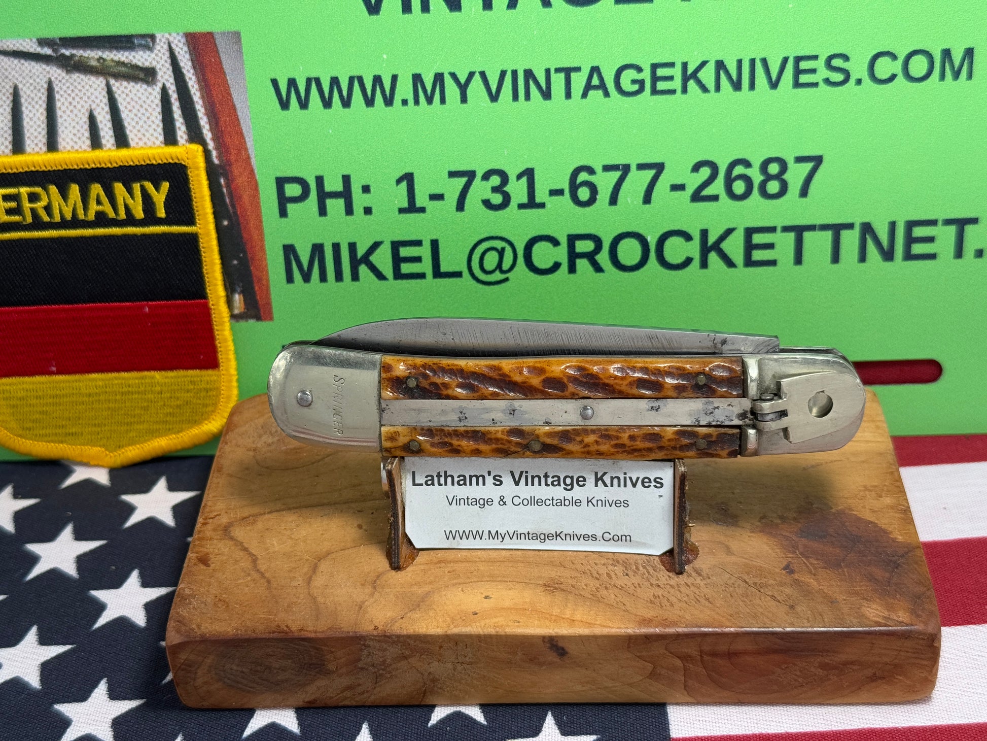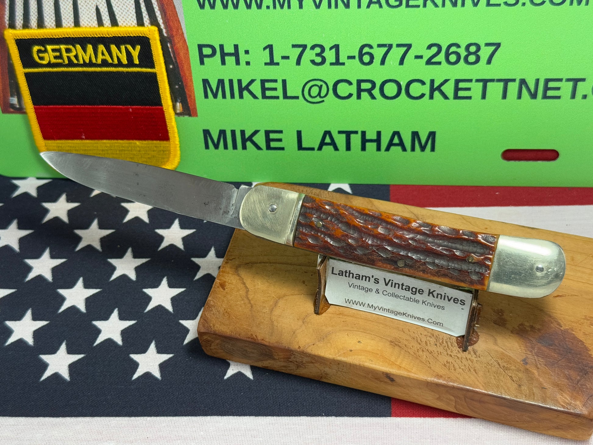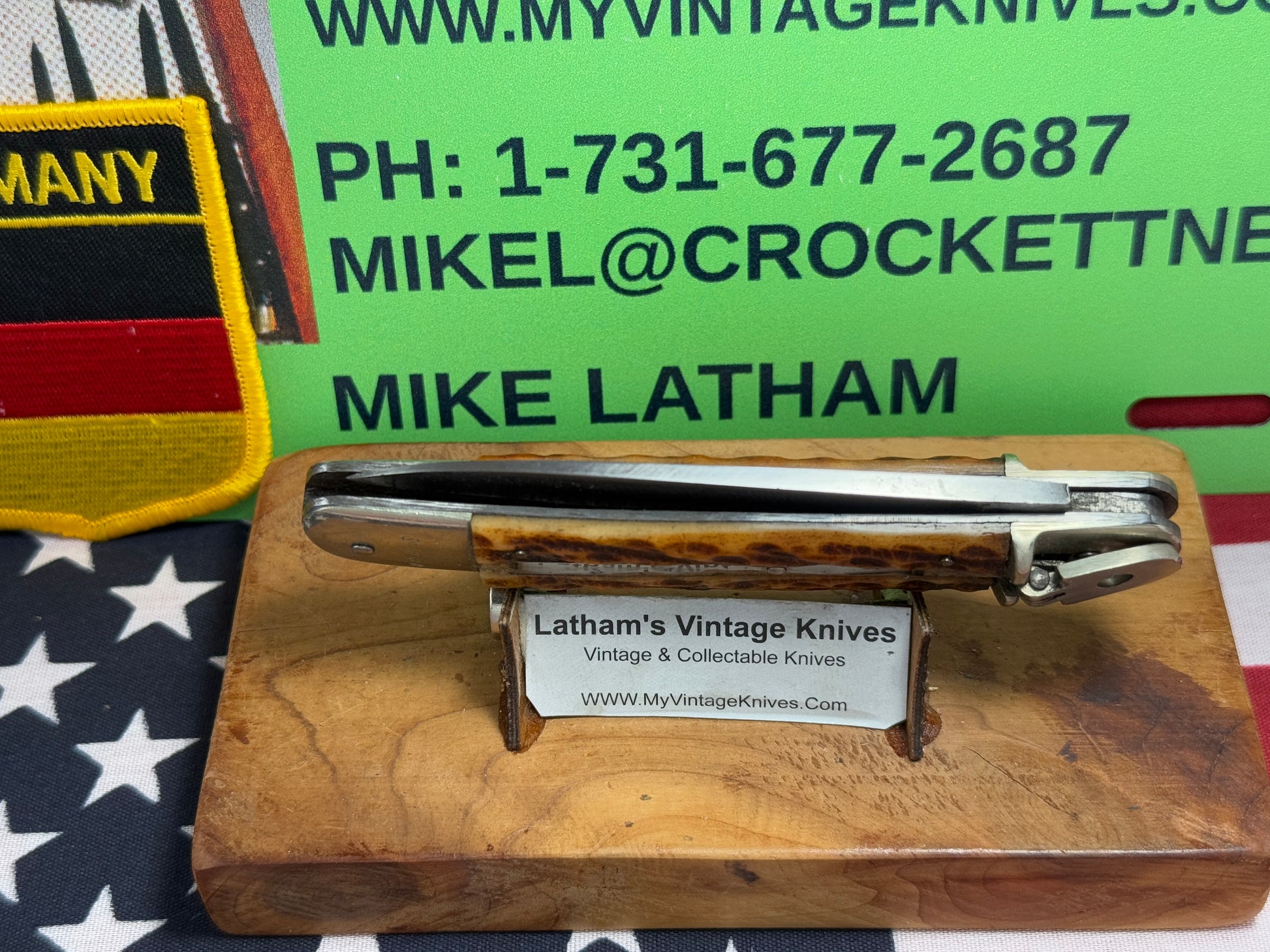 IMCO GERMANY 1950-55 LEVER AUTOMATIC SPRINGER 11 CM GERMAN AUTOMATIC KNIFE BROWN BONE HANDLES CLEARANCE ITEM!!