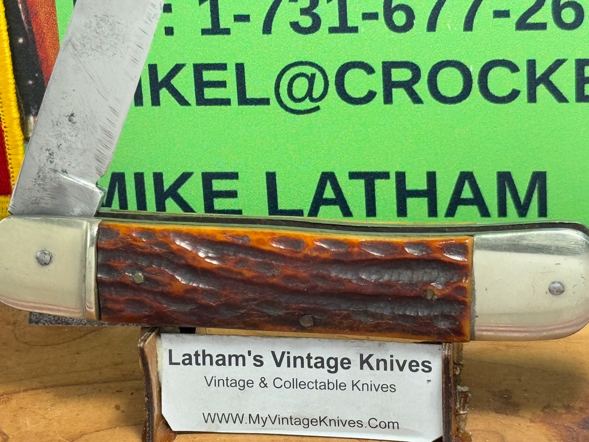 HANDLES: BROWN BONE, PIN CRACK AT BOTTOM FRONT AND BACK