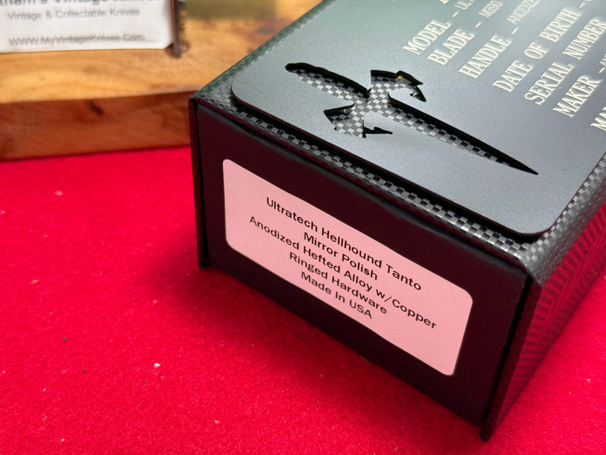 MICROTECH CUSTOM MARFIONE ULTRATECH HELLHOUND 03/2019 TANTO M390 MIRROR POLISHED BLADE TACTICAL AUTOMATIC KNIFE COPPER RINGED HARDWARE