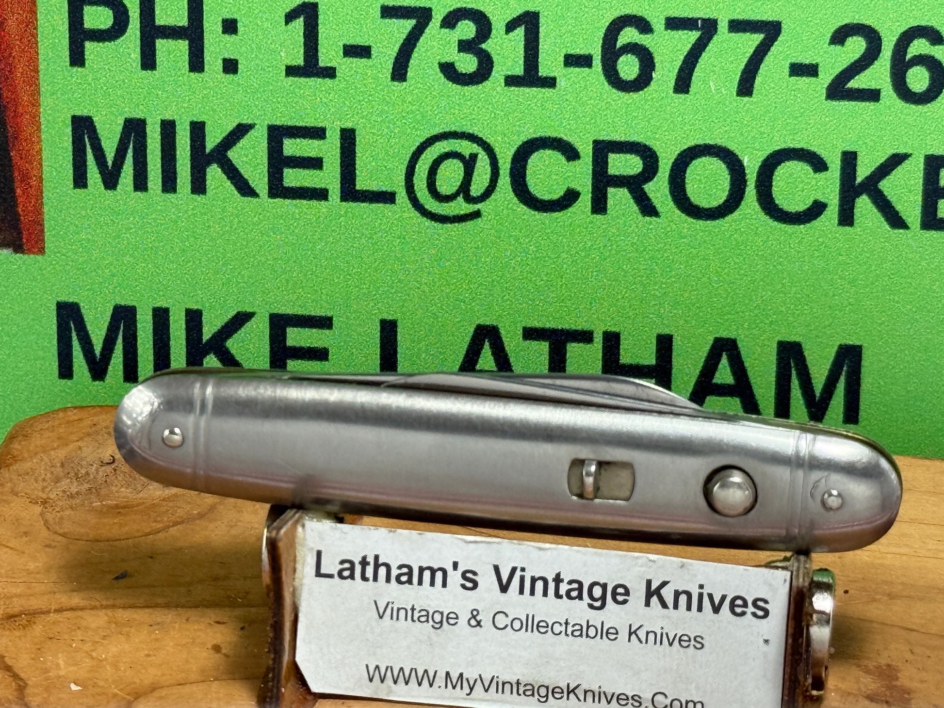 PRESTO GEO. SCHRADE BRIDGEPORT CONN. 1940-1959 TWIN BLADE DOUBLE BUTTON 3 3/8" VINTAGE AMERICAN AUTOMATIC KNIFE METAL HANDLES