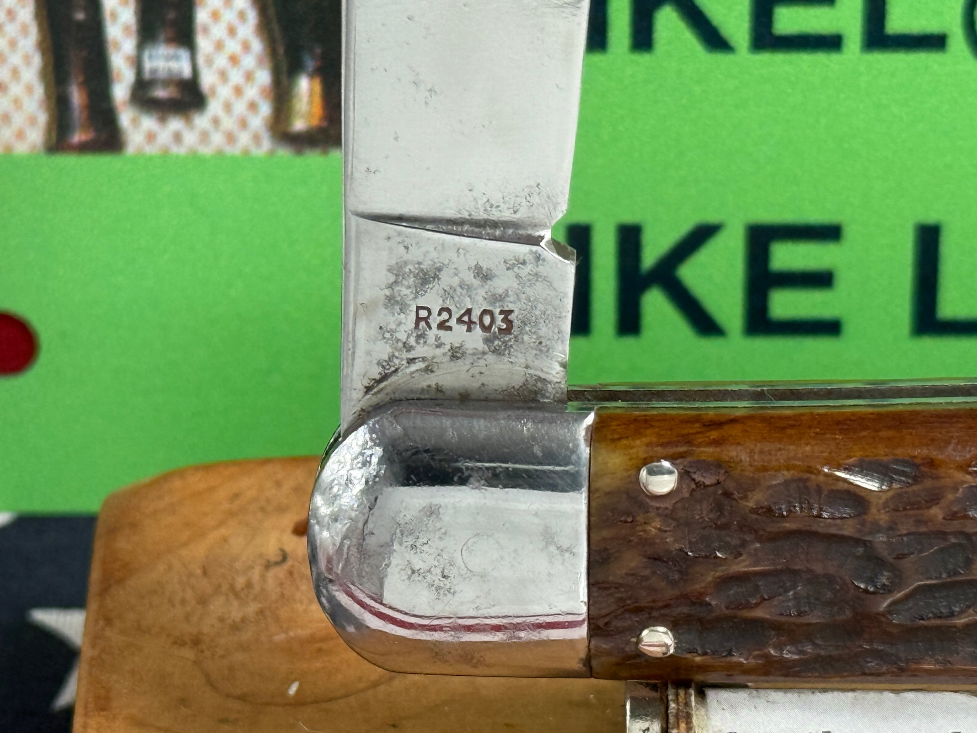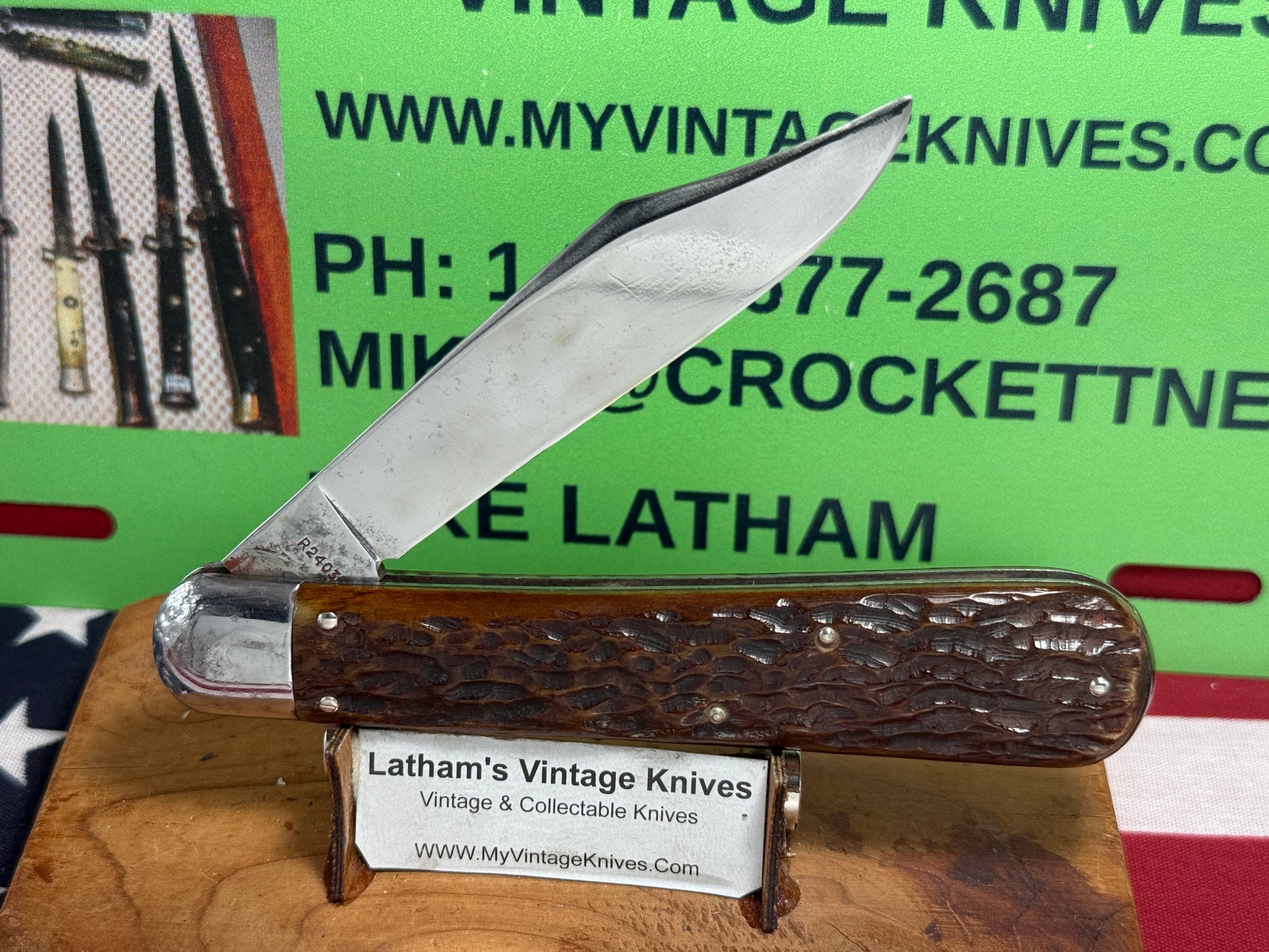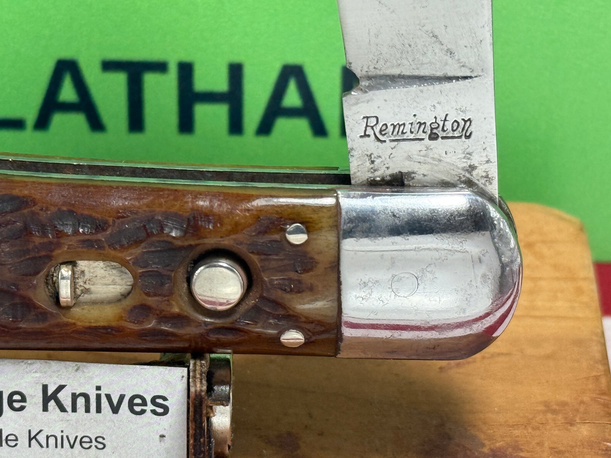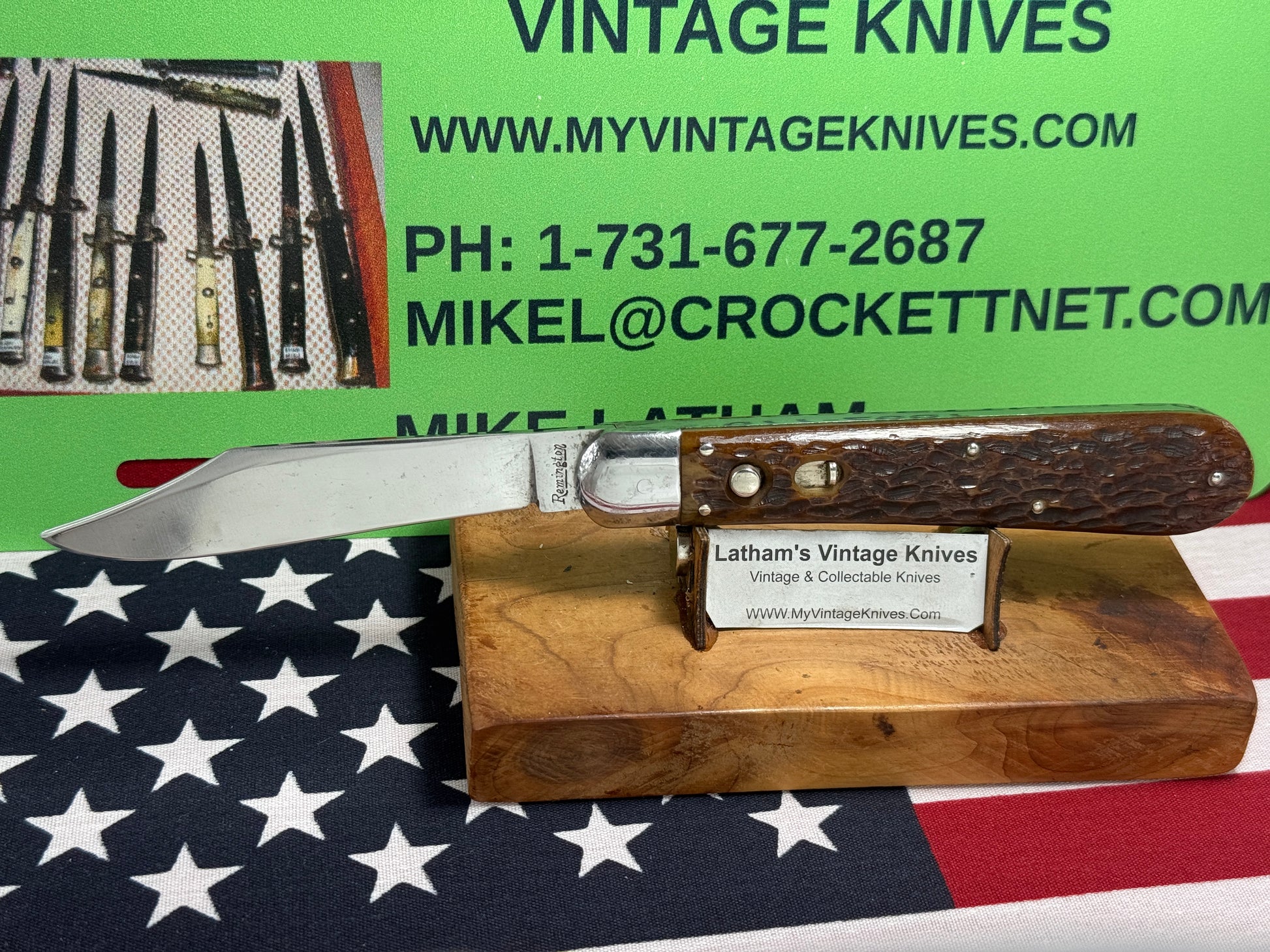 REMINGTON UMC 1920-40 LARGE 5" HUNTER R2403 VINTAGE AMERICAN AUTOMATIC KNIFE BROWN JIGGED BONE HANDLES