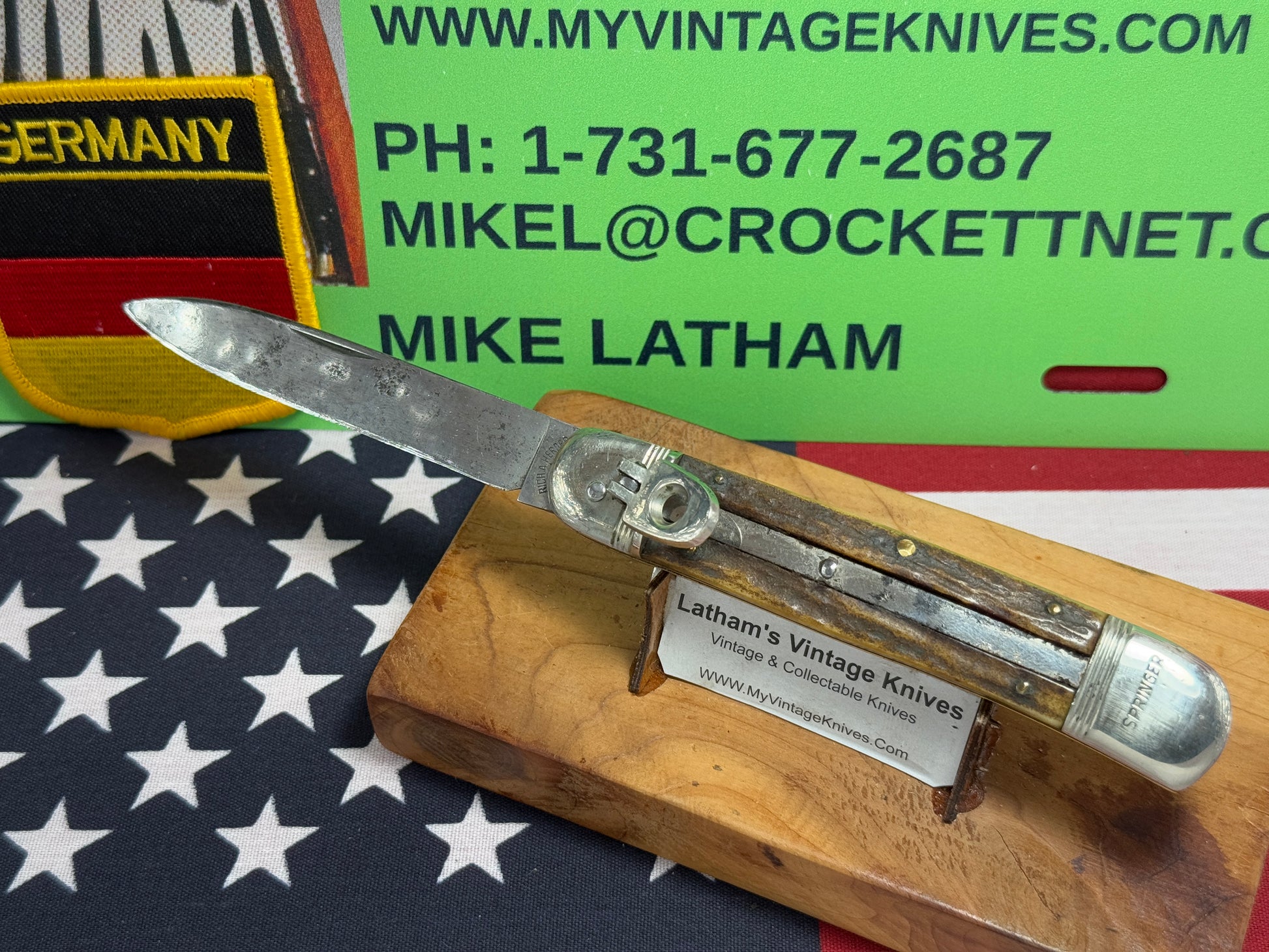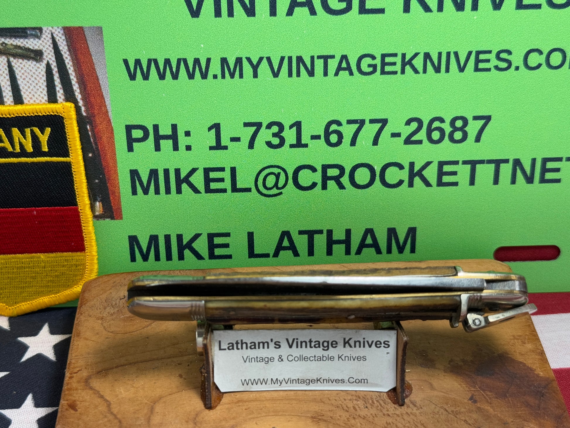 RICH A. HERDER SOLINGEN GERMANY 1950-55 LEVER AUTOMATIC SPRINGER 11 CM GERMAN AUTOMATIC KNIFE STAG HANDLES CLEARANCE ITEM!!