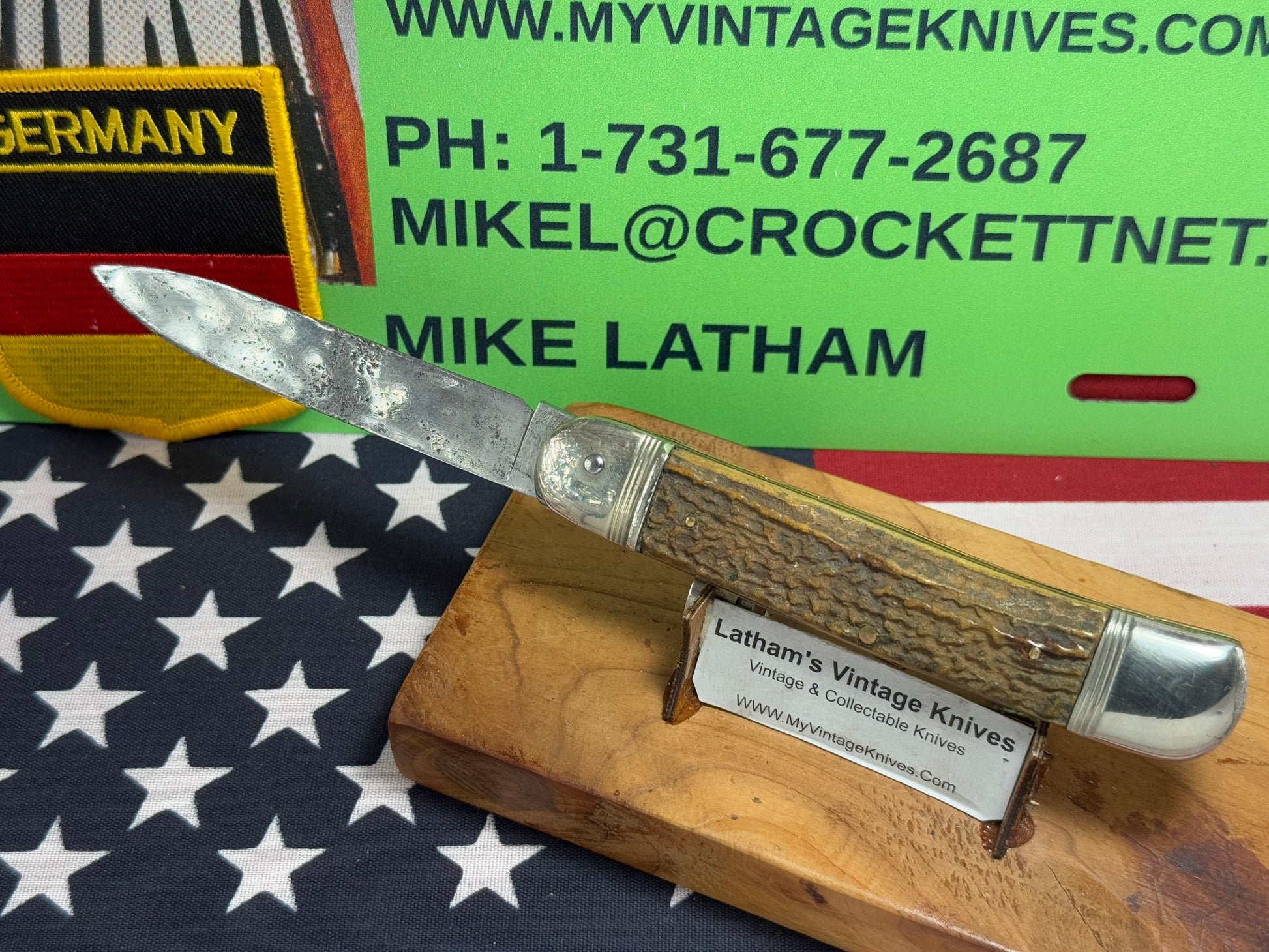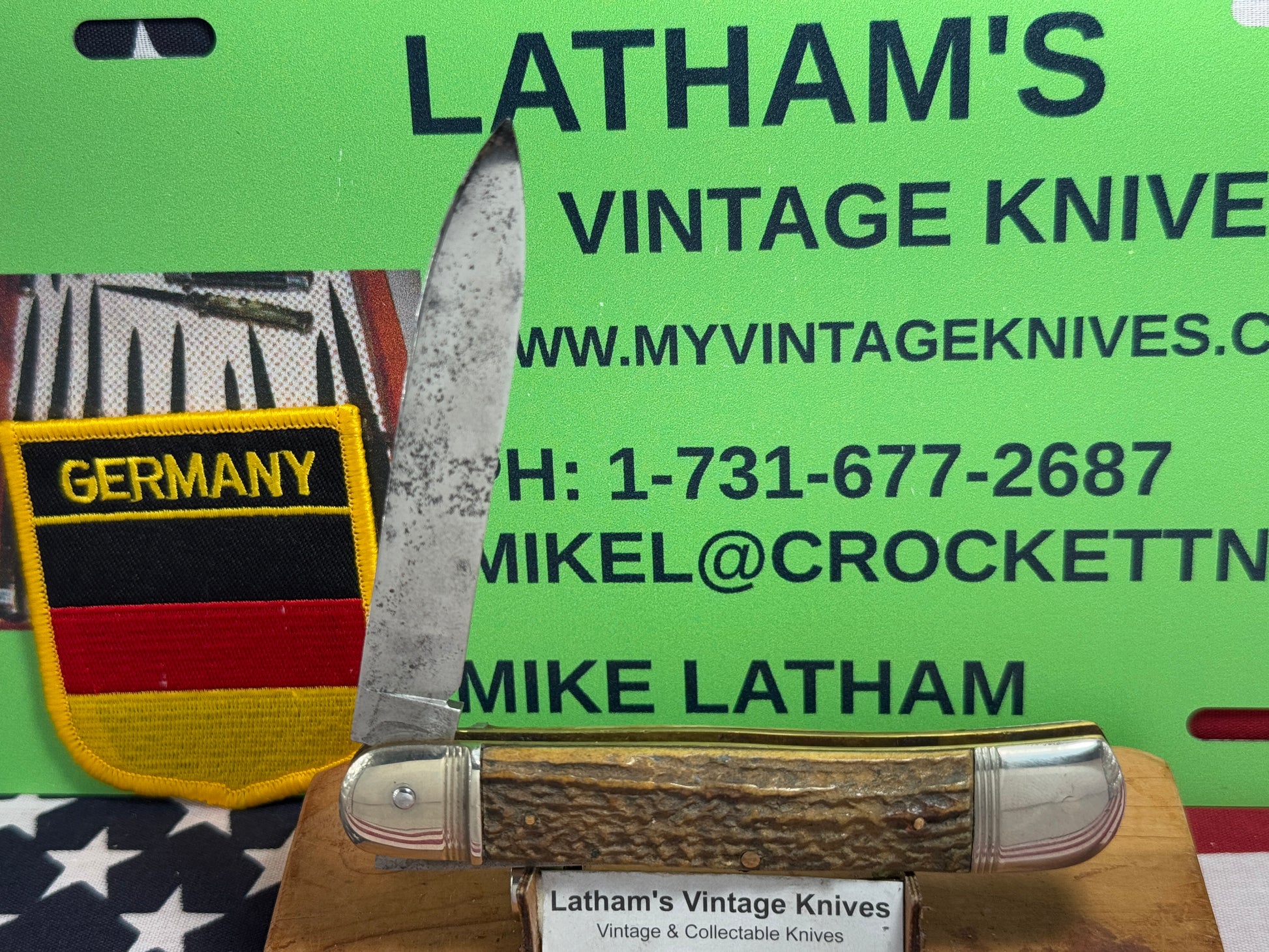 HANDLES: STAG, NO CRACKS OR CHIPS.