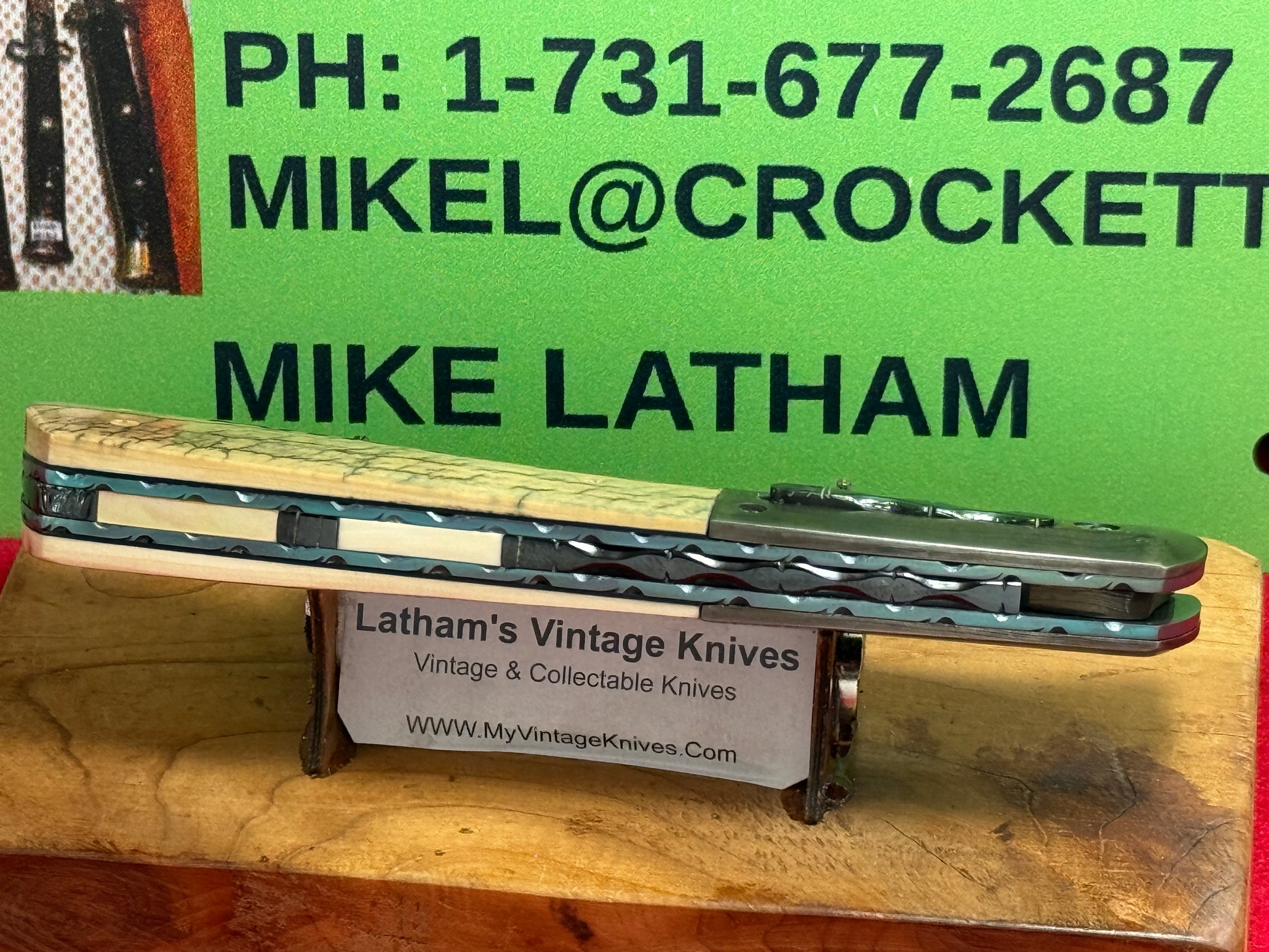 RICHTER, JOHN (J.C.R.) CUSTOM AUTOMATIC KNIVES 2005-2010 HUNTER CUSTOM AUTOMATIC KNIFE MAMOTH IVORY HANDLES