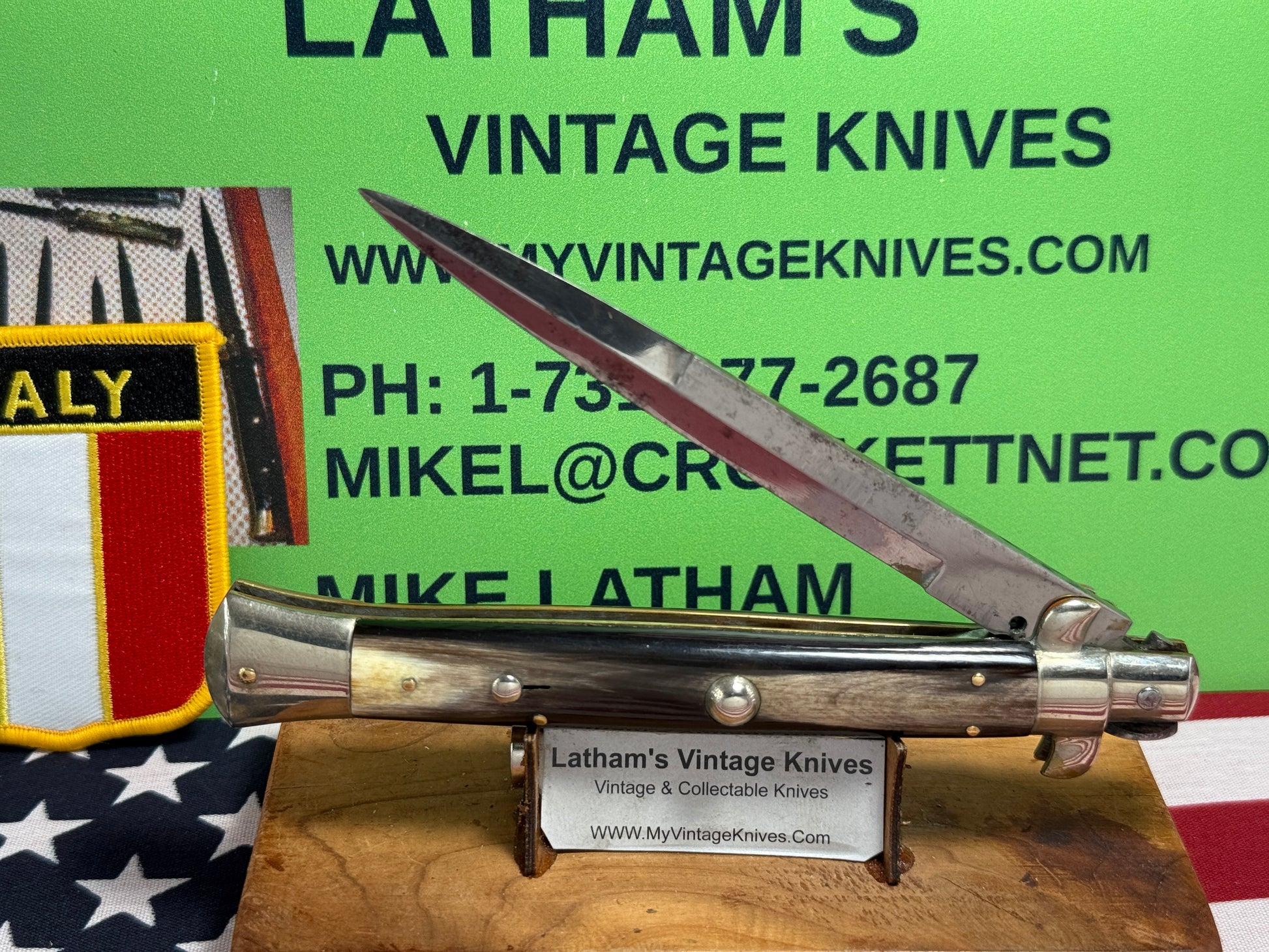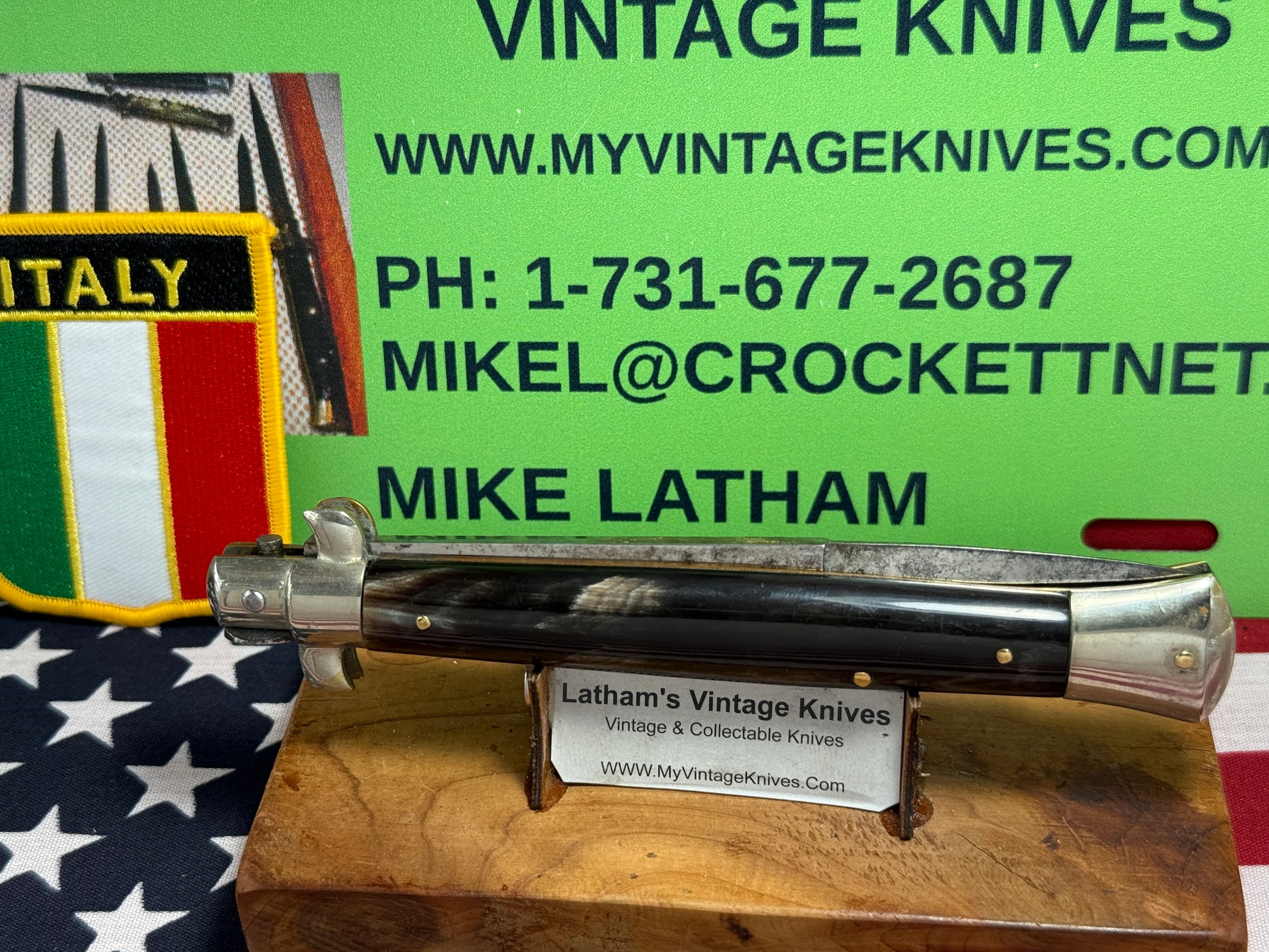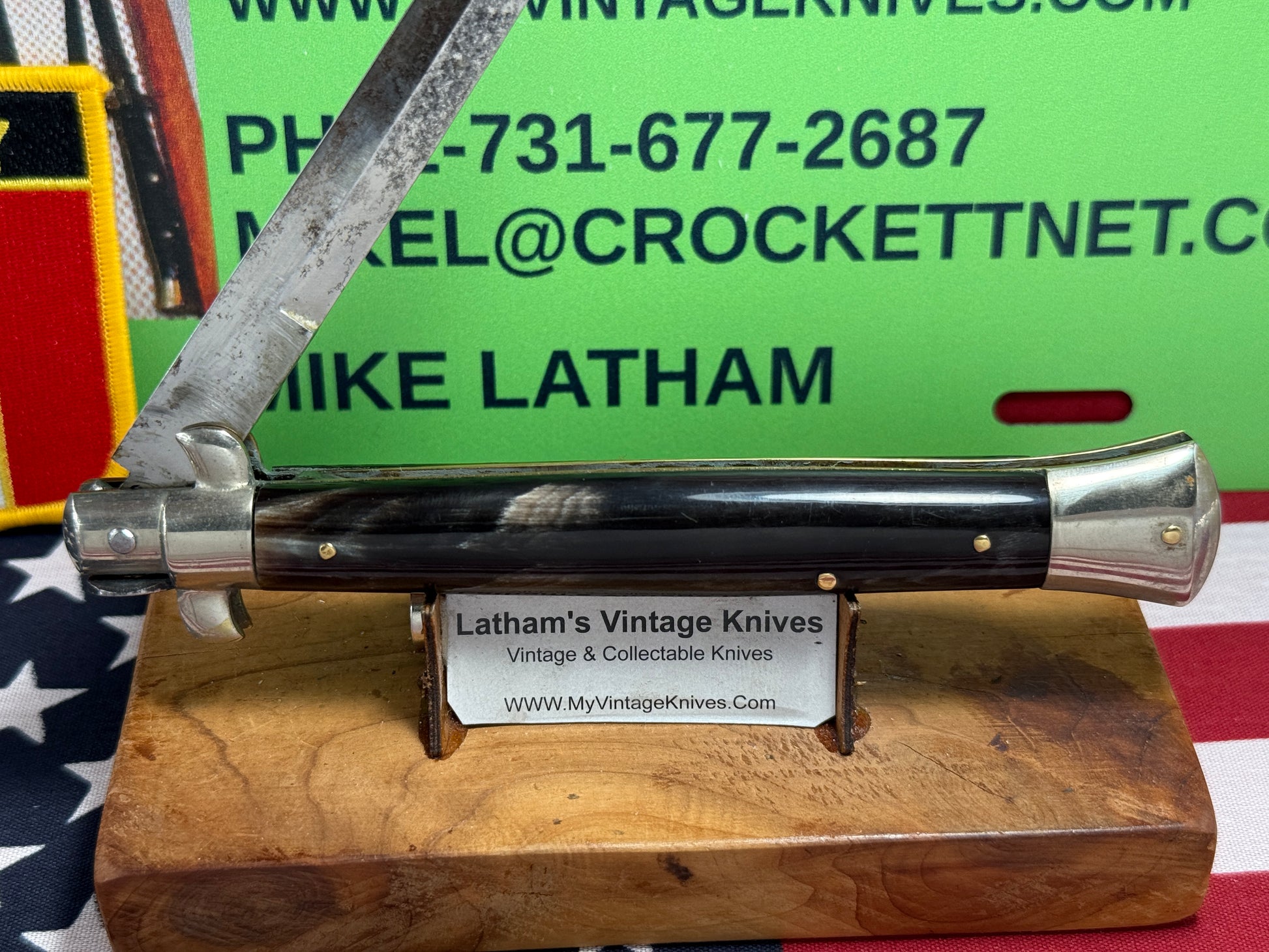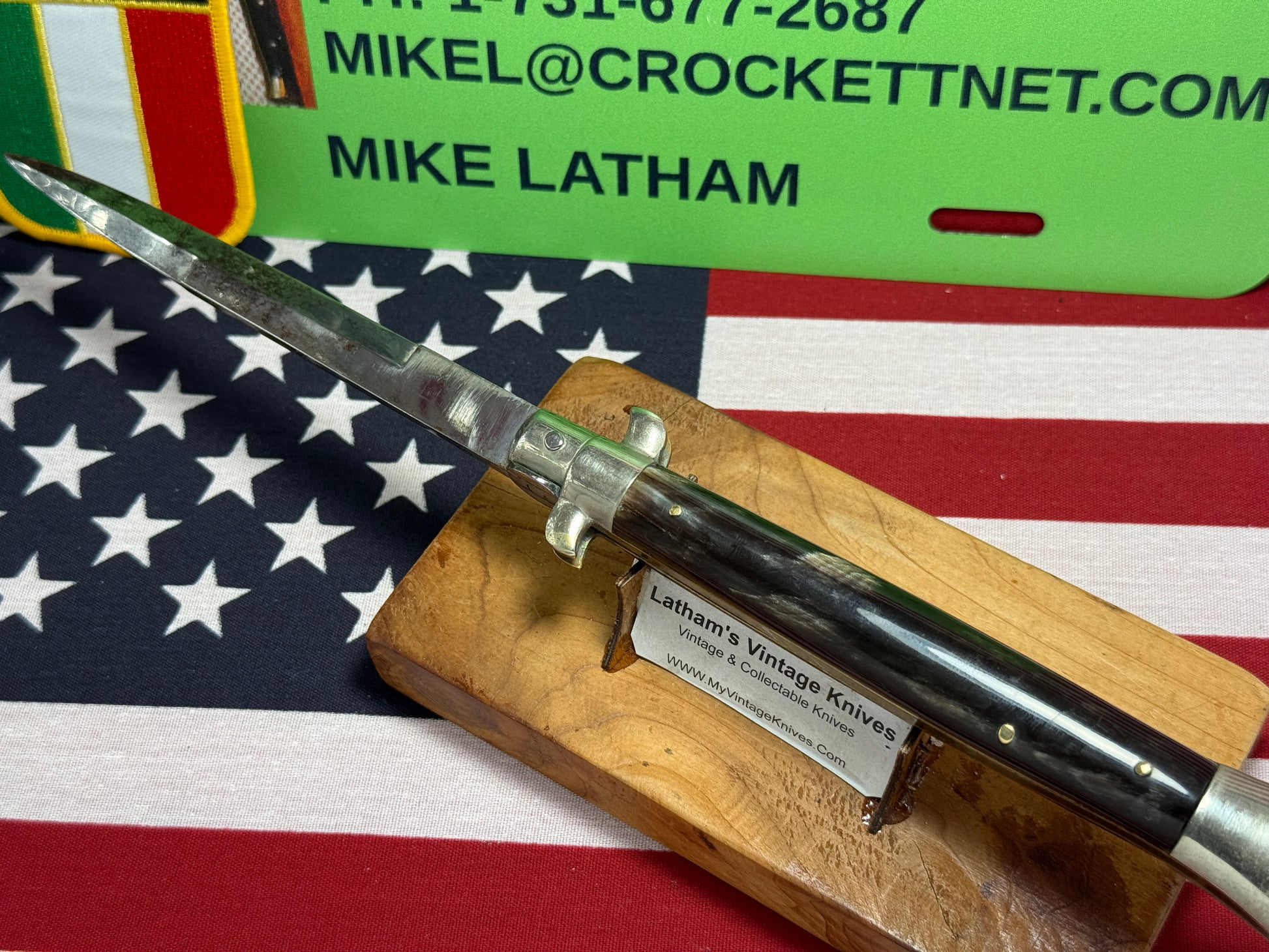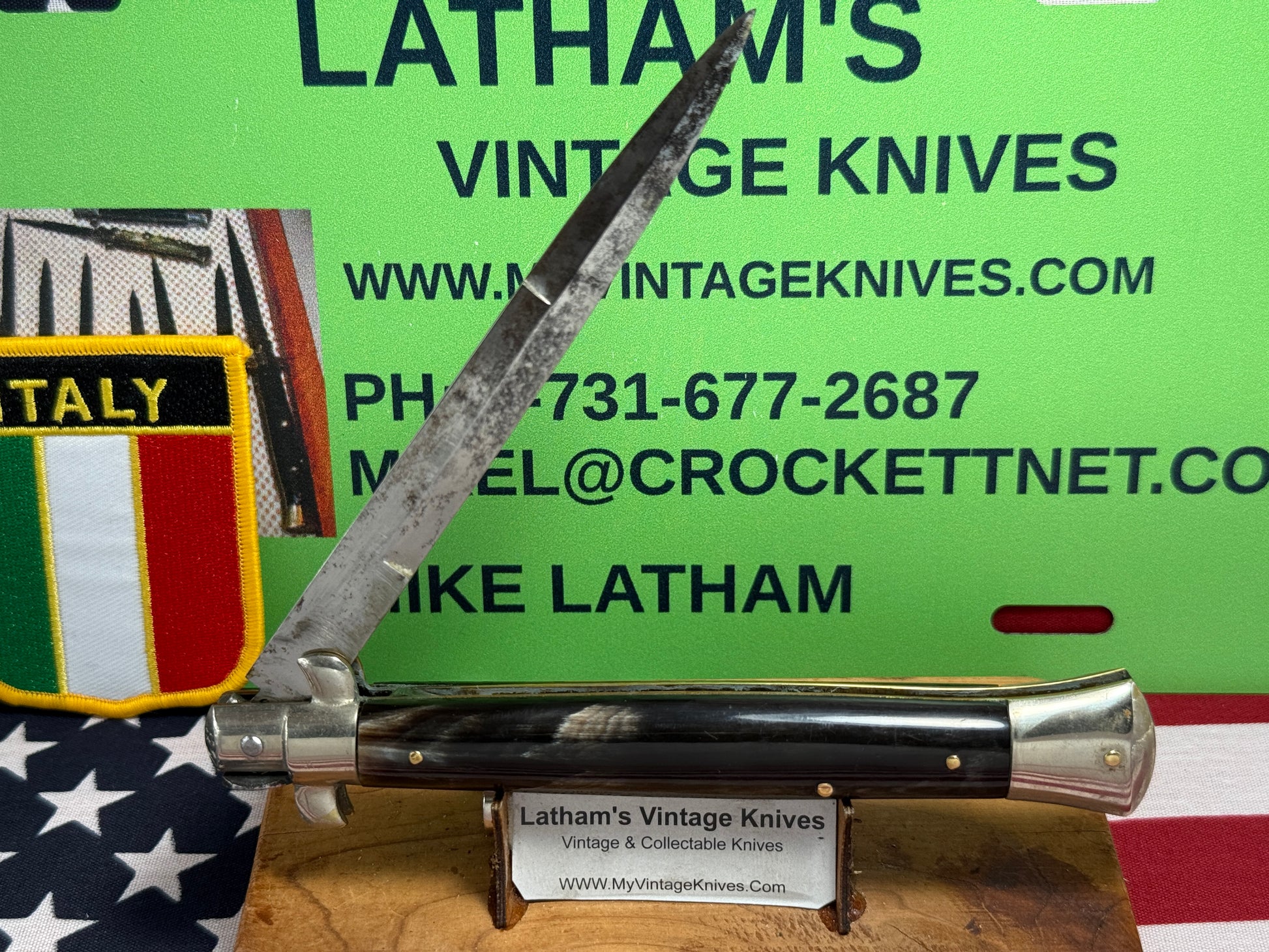 ROMO ITALY 1950-56 PICK LOCK STILETTO 28 CM ITALIAN AUTOMATIC KNIFE BUFFALO HORN HANDLES