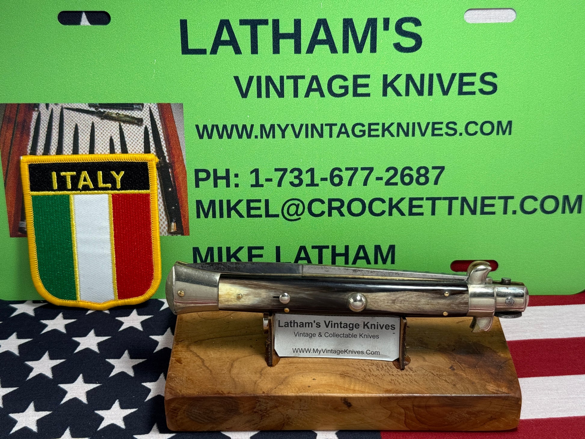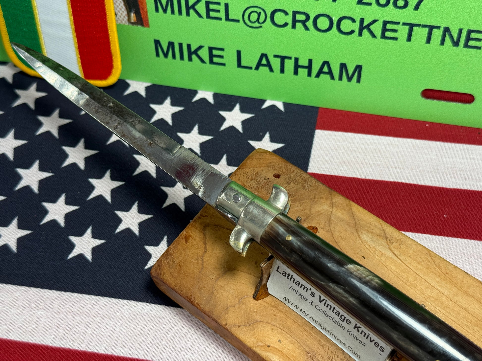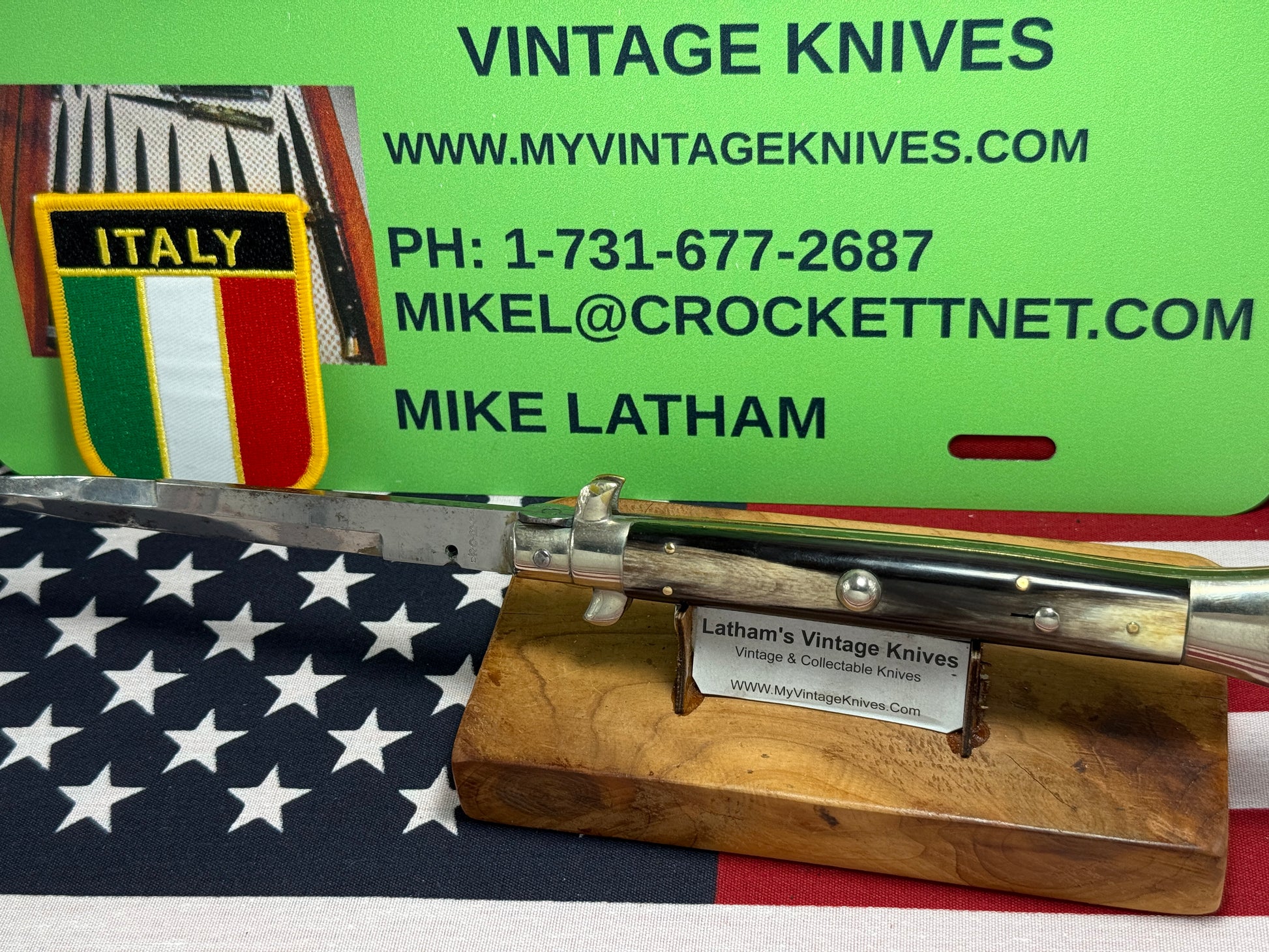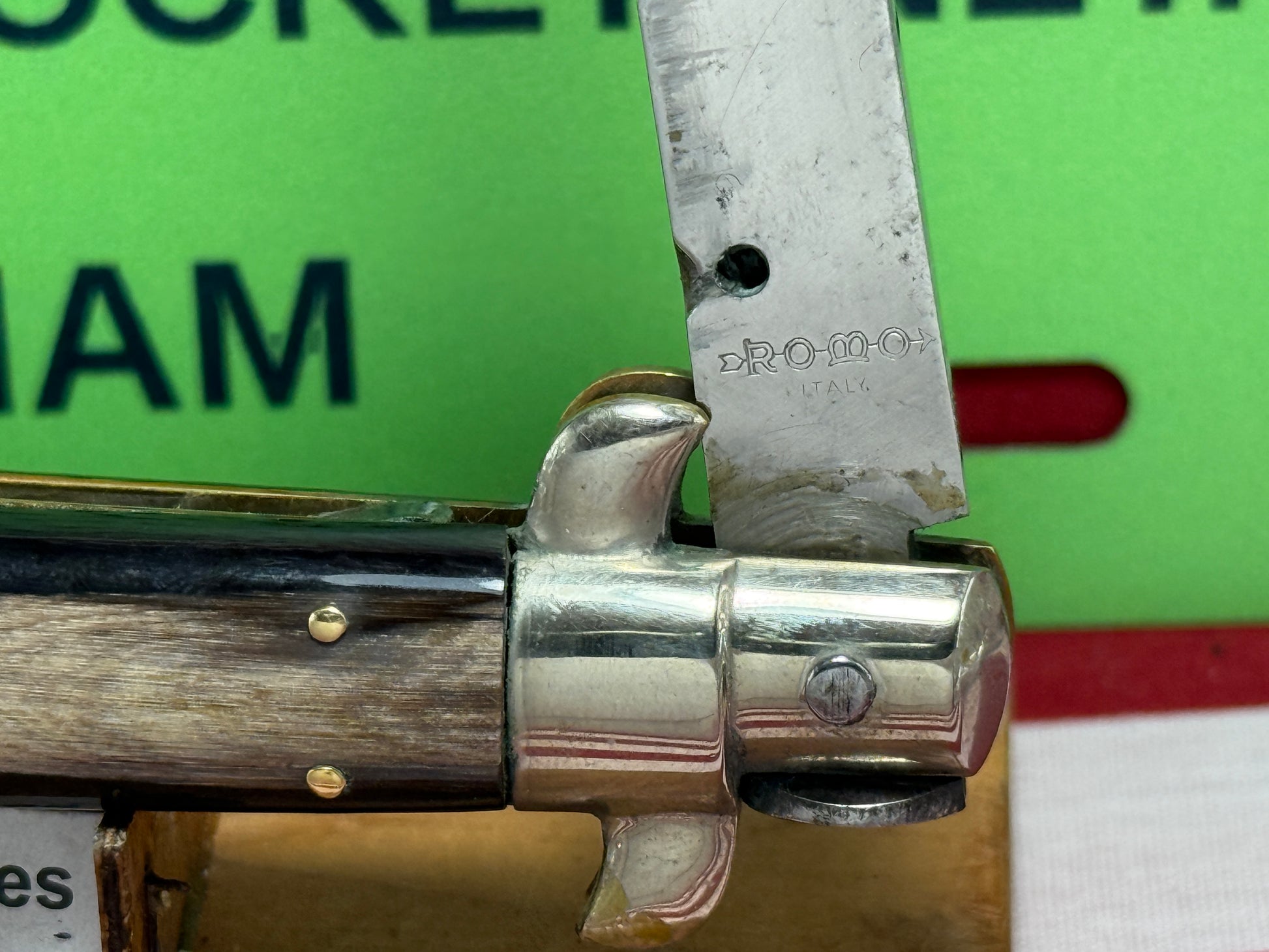 ROMO ITALY 1950-56 PICK LOCK STILETTO 28 CM ITALIAN AUTOMATIC KNIFE BUFFALO HORN HANDLES