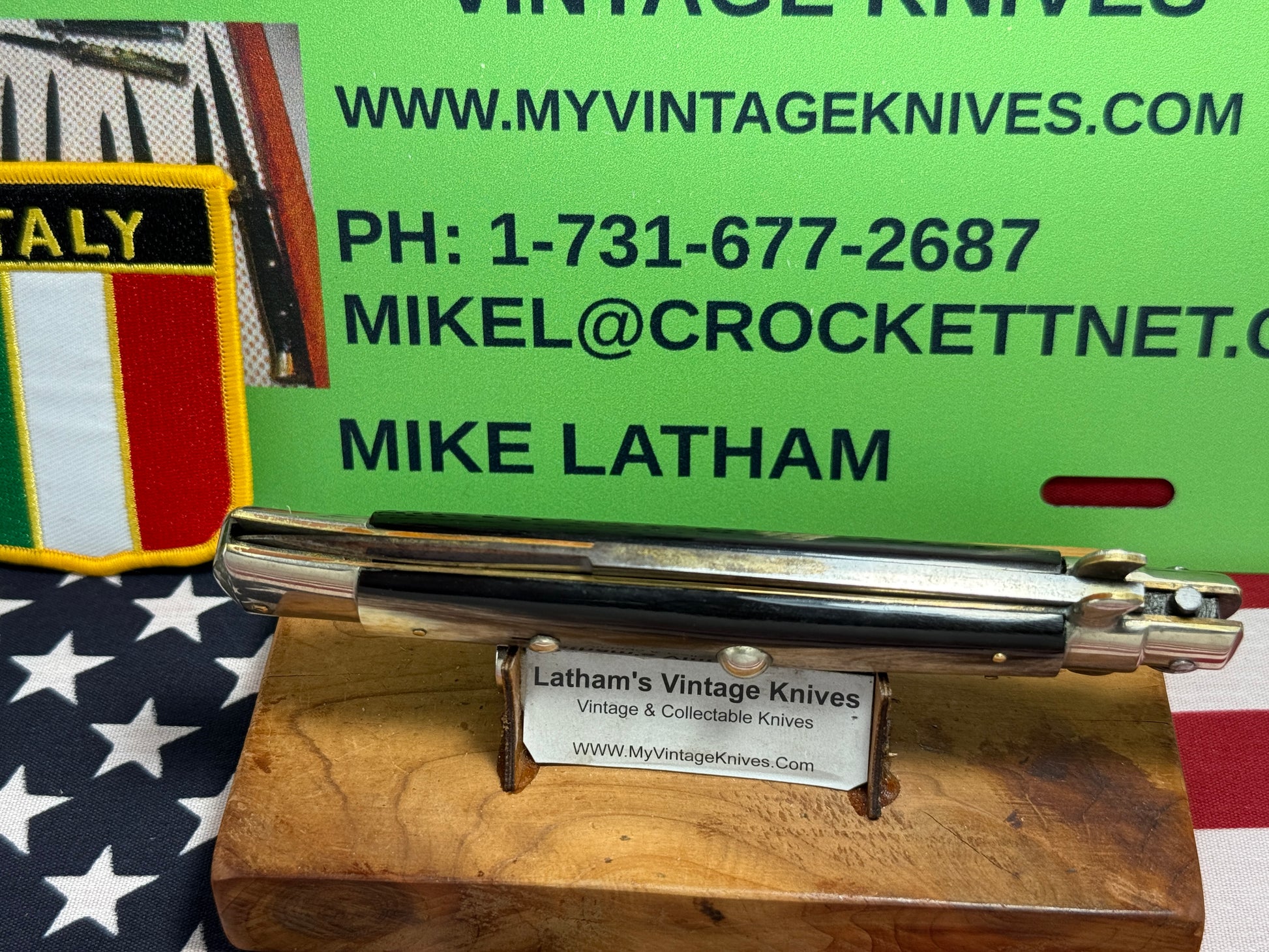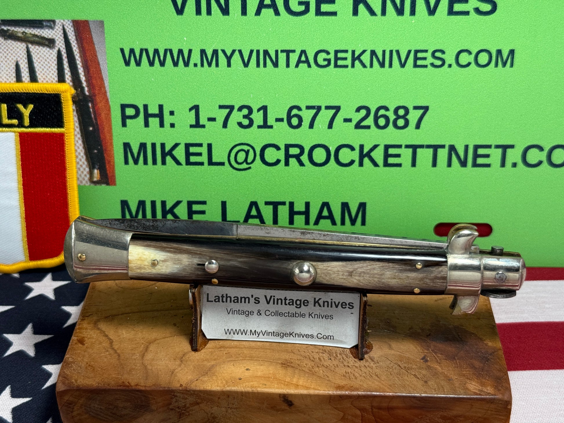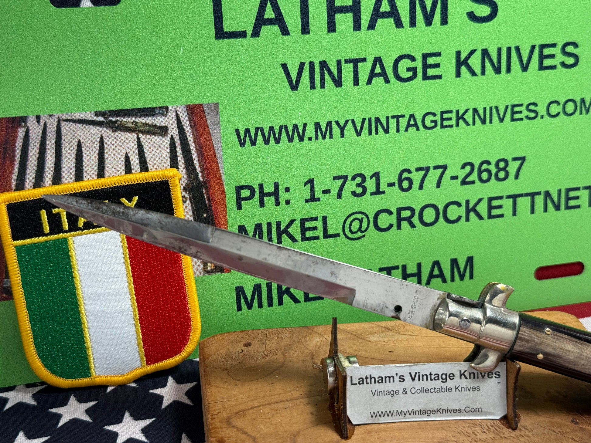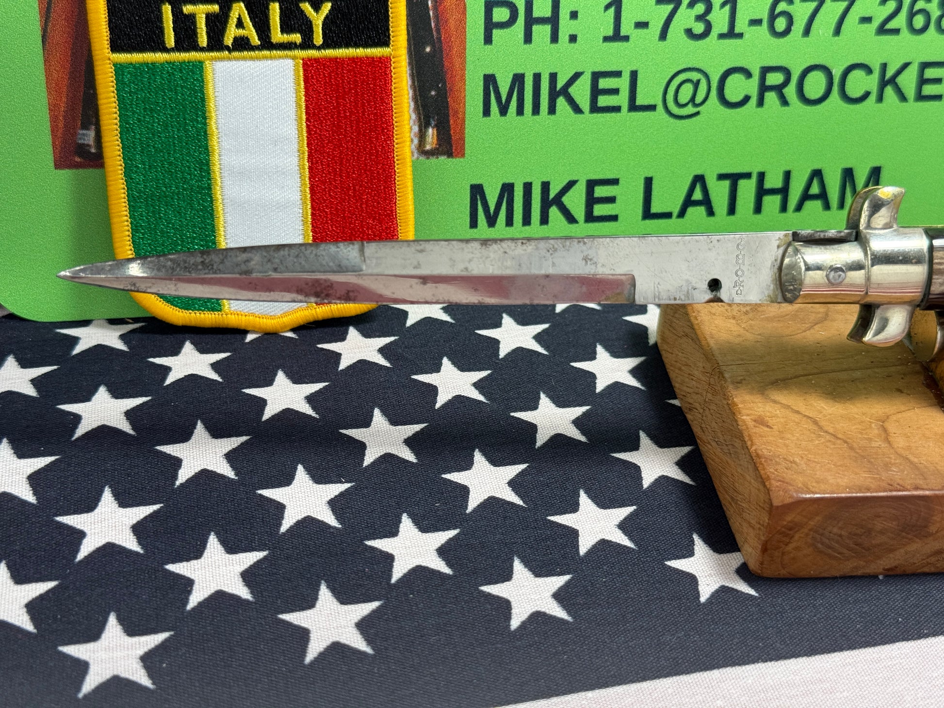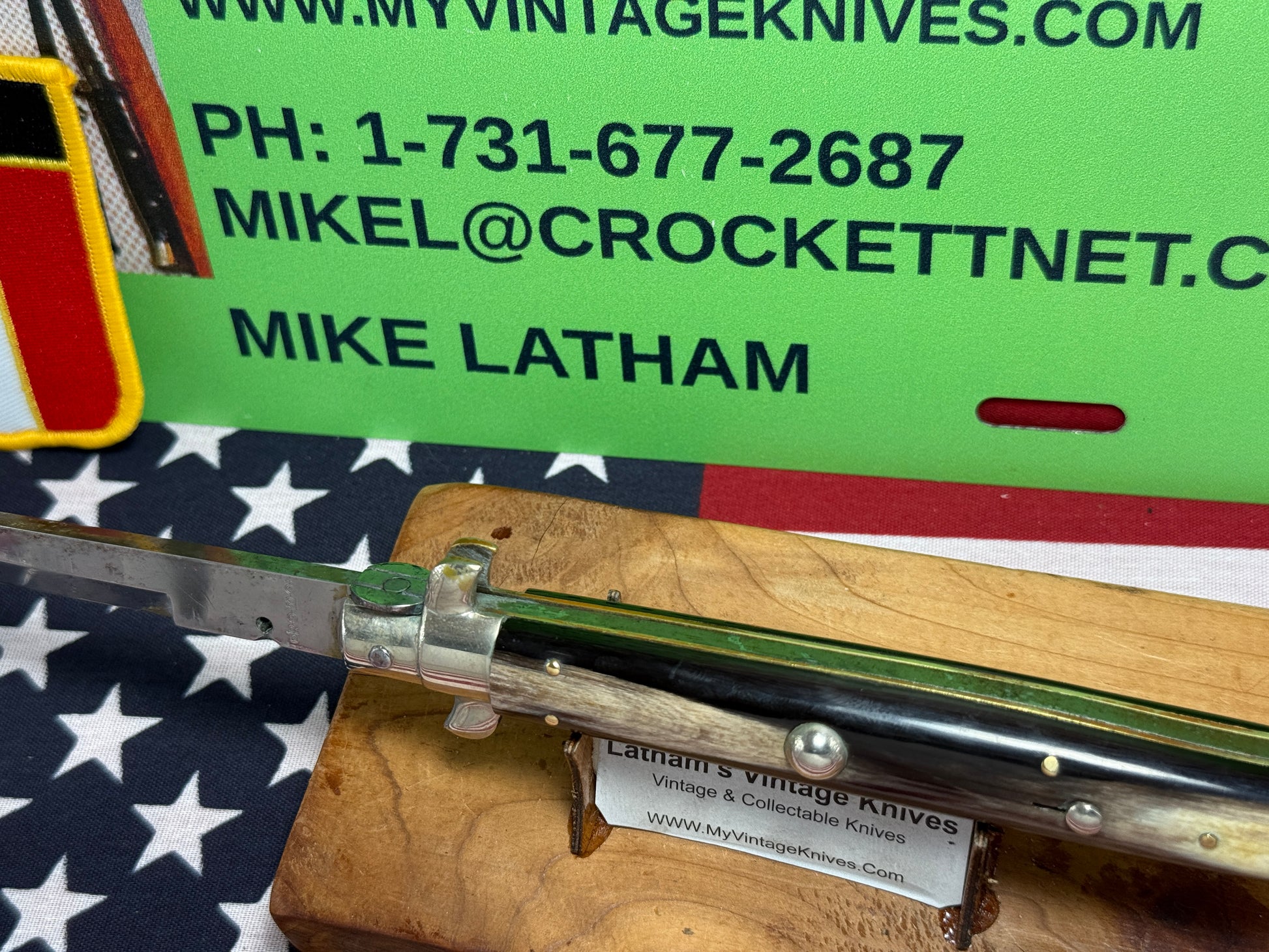ROMO ITALY 1950-56 PICK LOCK STILETTO 28 CM ITALIAN AUTOMATIC KNIFE BUFFALO HORN HANDLES