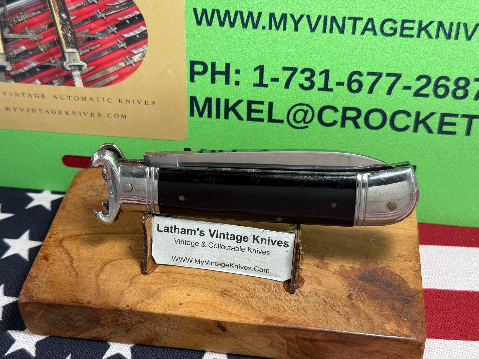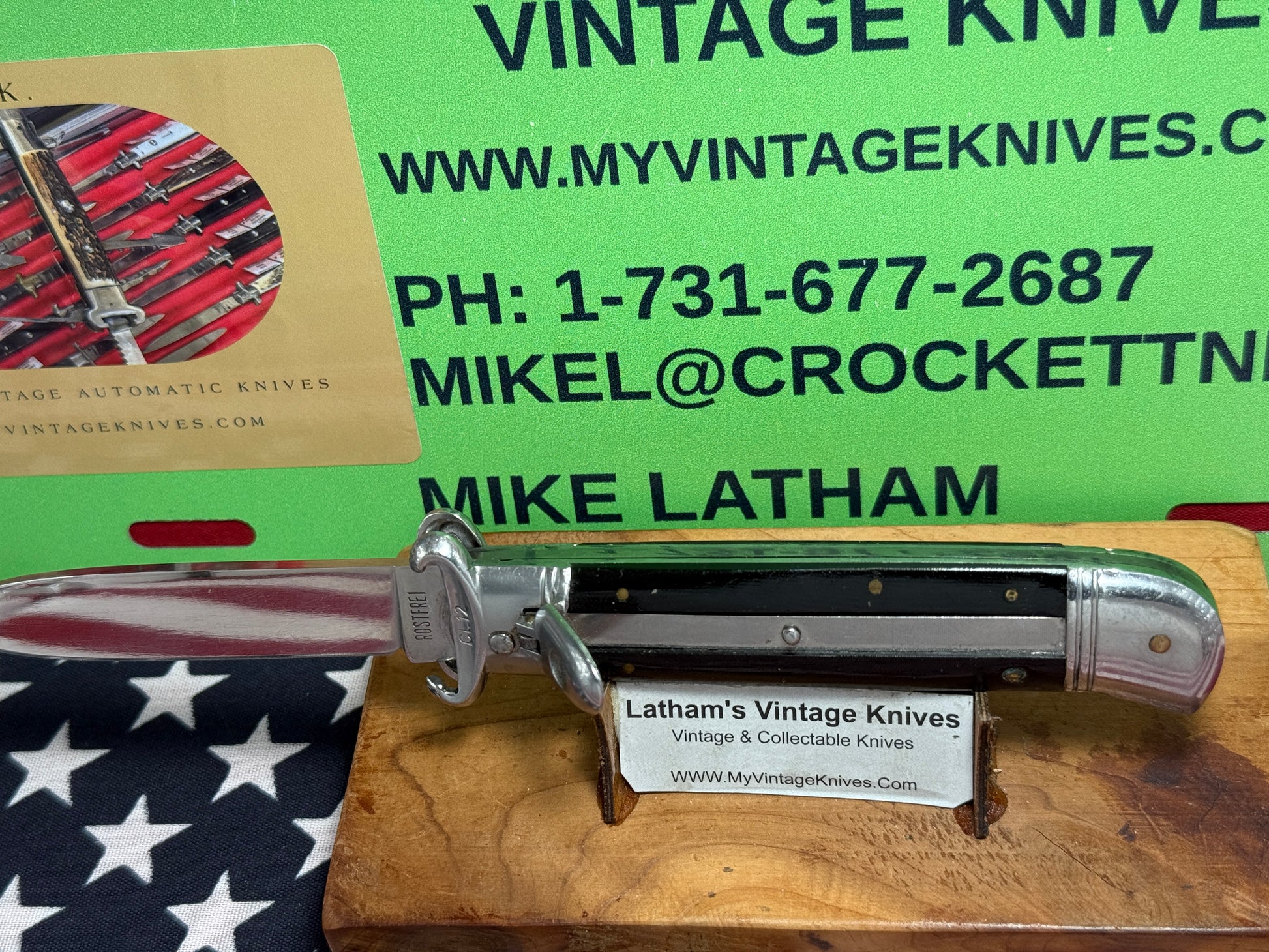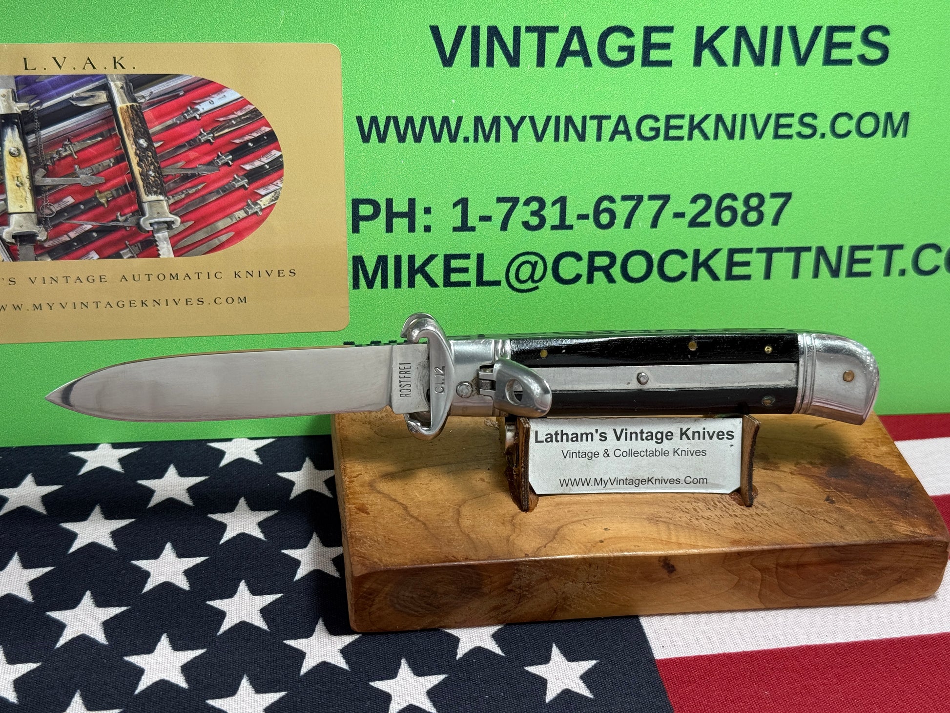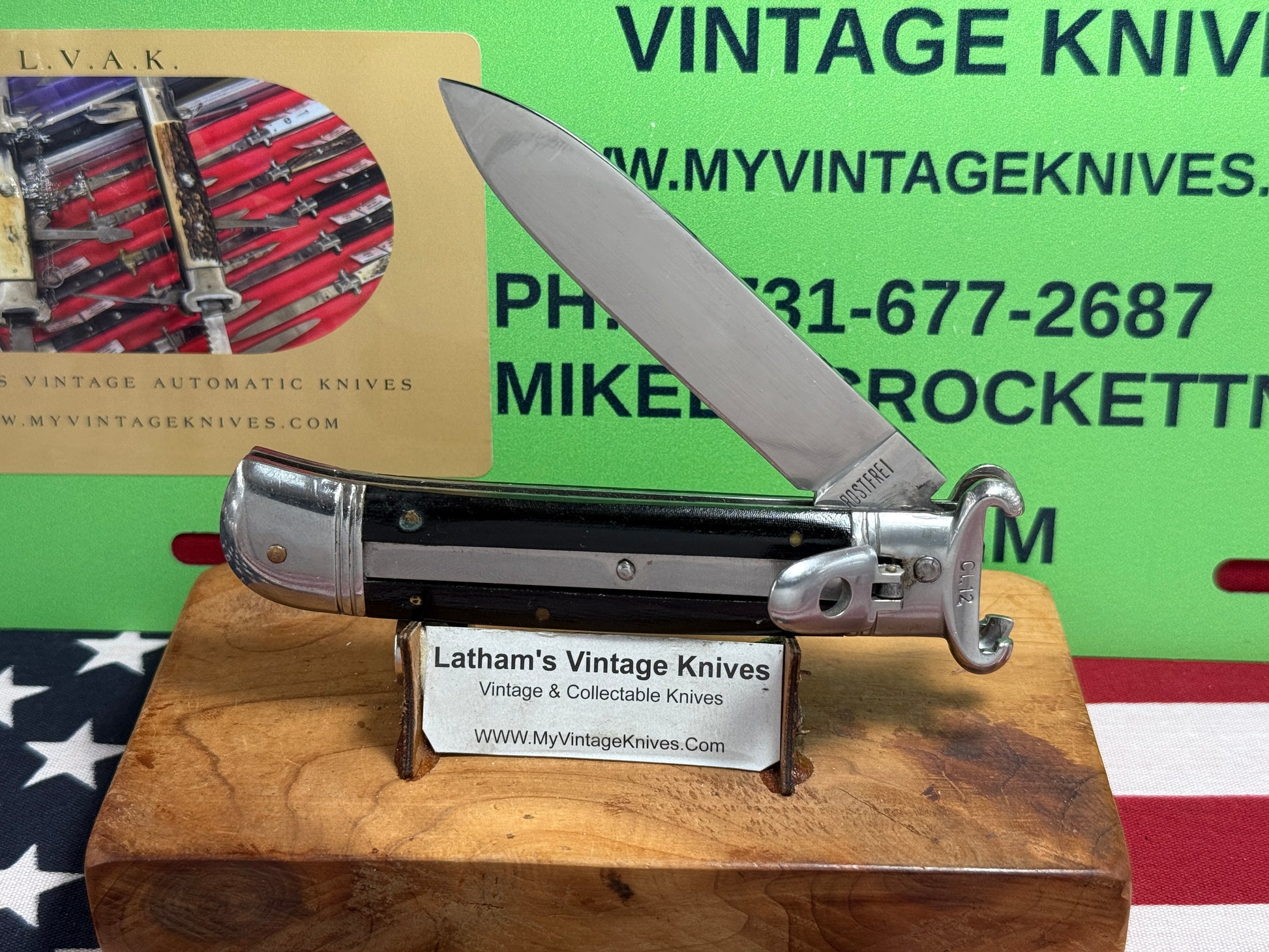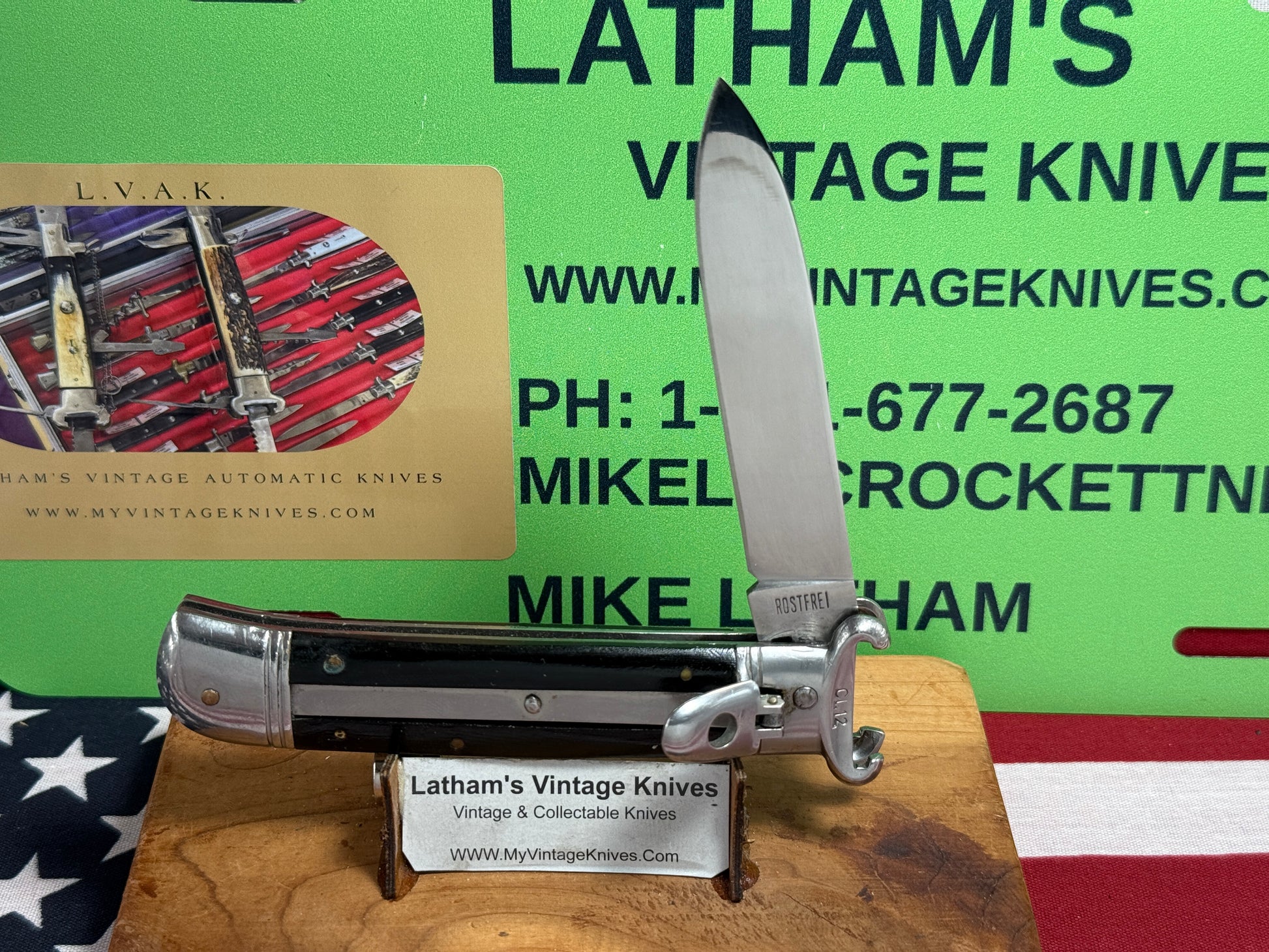 ROSTFREI 1960-65 SHELL PULLER LEVER AUTOMATIC SPRINGER GERMAN AUTOMATIC KNIFE BLACK MICARTA HANDLES