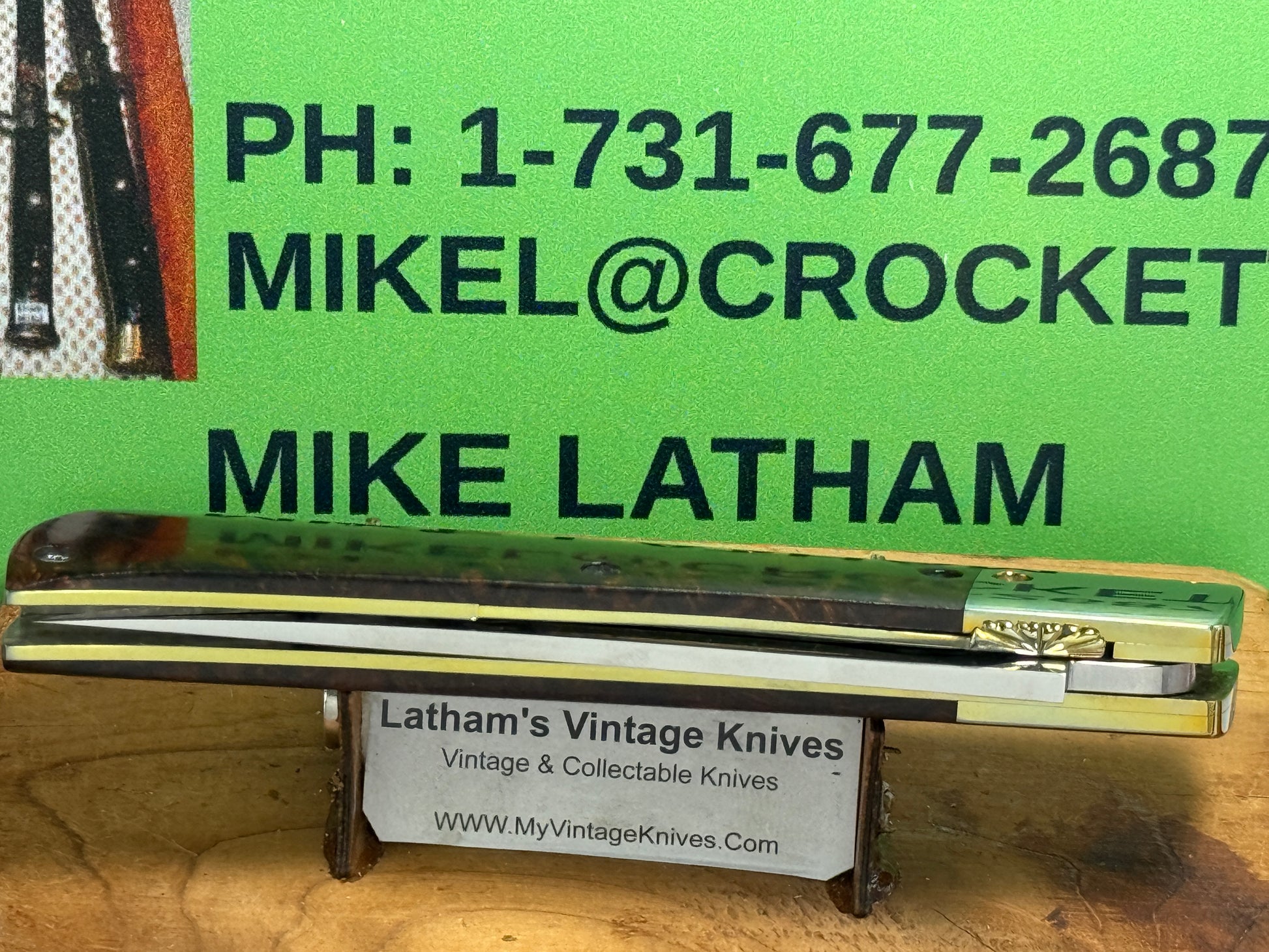 VALLOTTON, RAINY CUSTOM KNIVES 1993-1998 ERA PERSIAN ATS 34 CUSTOM AUTOMATIC KNIFE IRON WOOD HANDLES