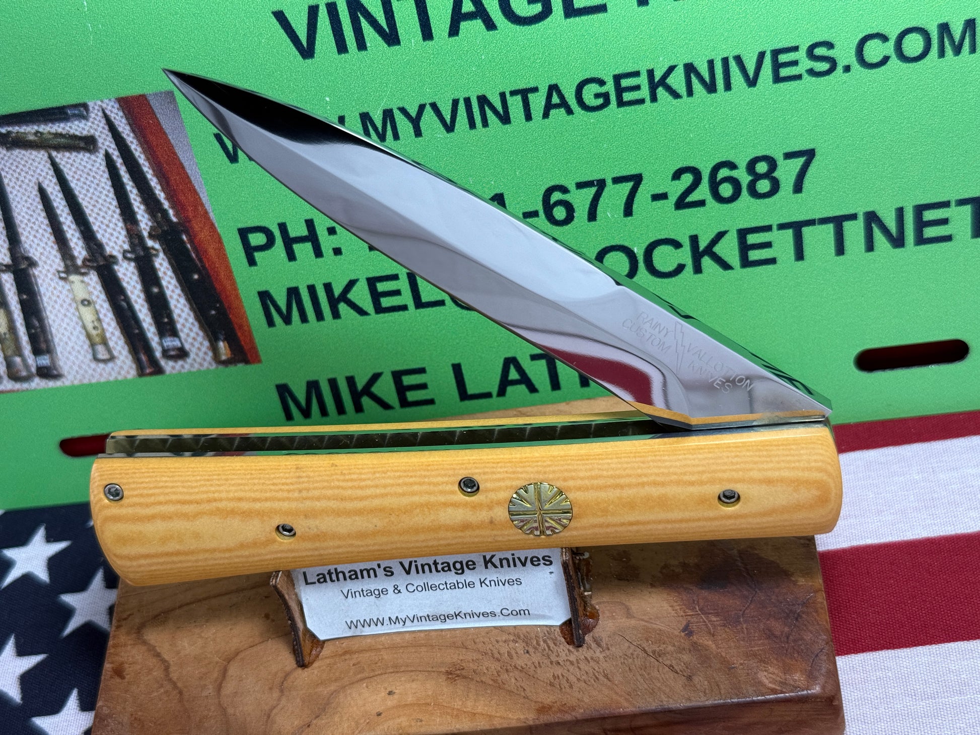 VALLOTTON, RAINY CUSTOM KNIVES 1998-2001 ERA D & D FAN TAIL BAYONET BLADE CUSTOM AUTOMATIC KNIFE WESTINGHOUSE MICARATA HANDLES