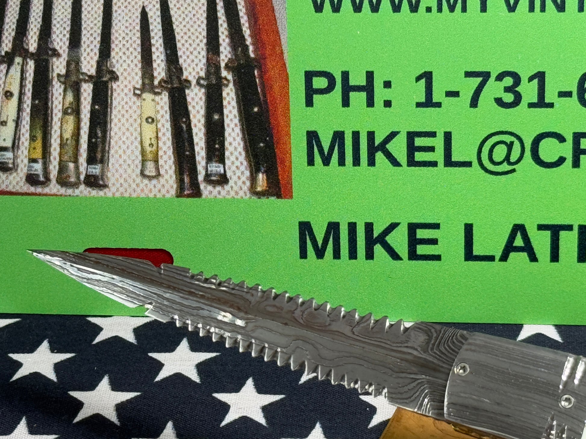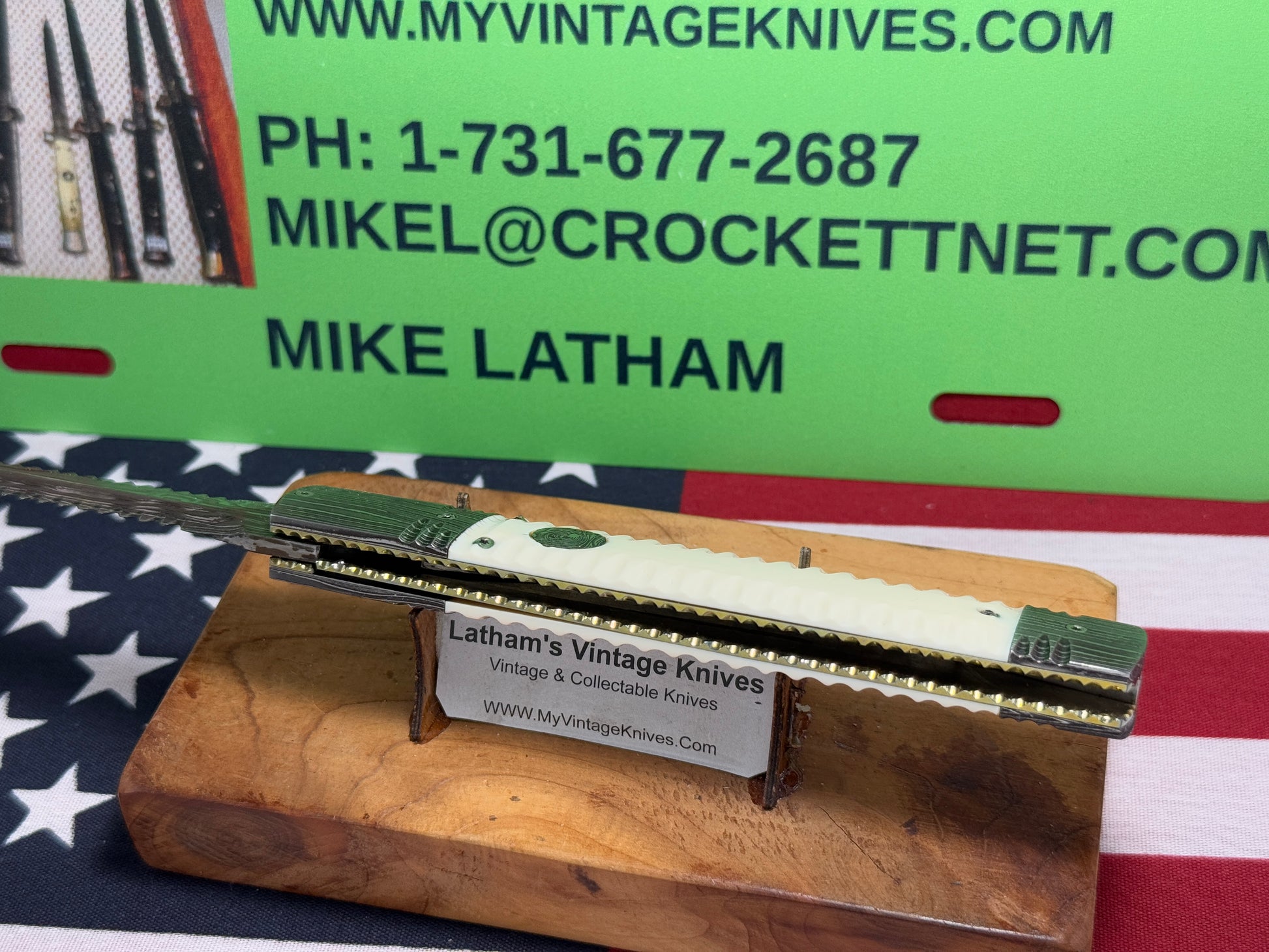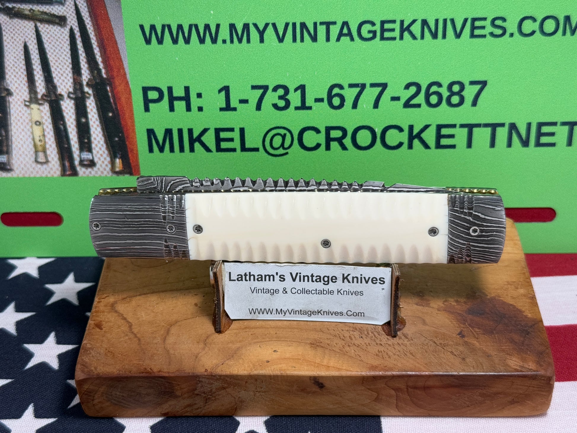 VALLOTTON, RAINY CUSTOM KNIVES USA/OREGON 2001-2003 ERA D & D ORIGINAL DAMACUS STEEL FEATHER CUT ICE PICK CUSTOM AUTOMATIC KNIFE MAMMOTH IVORY SCALES